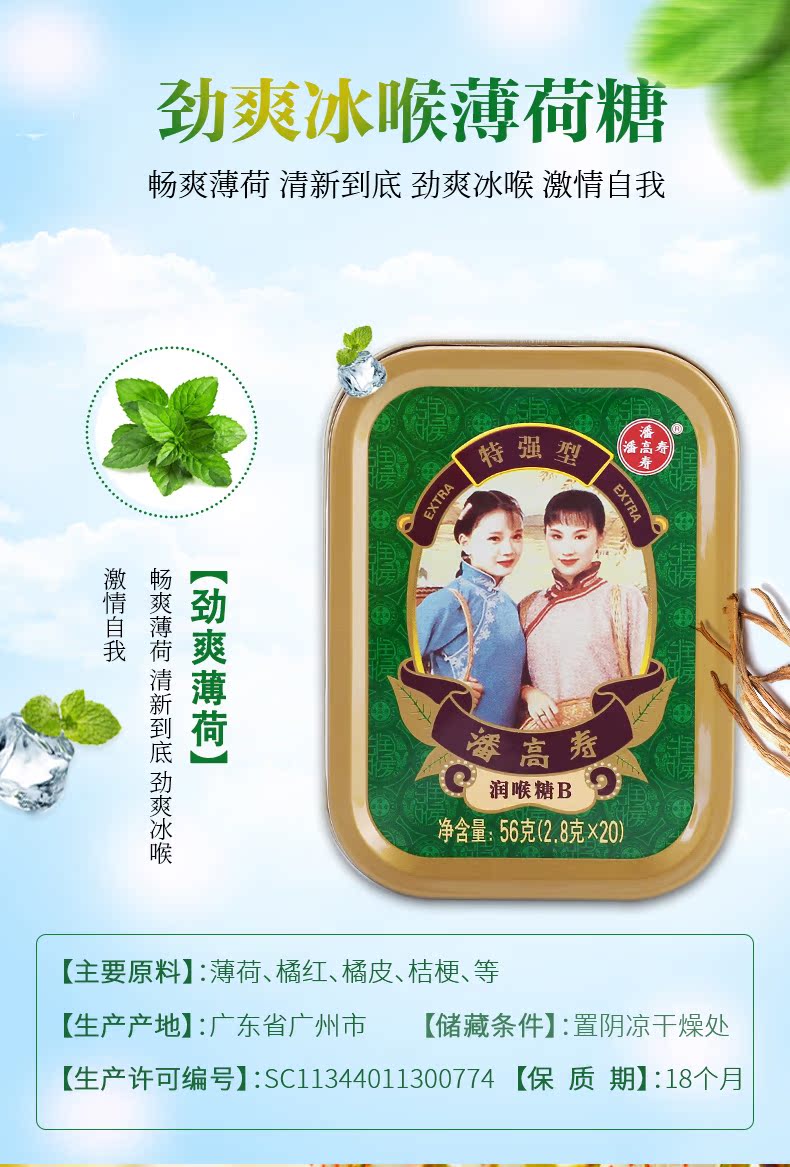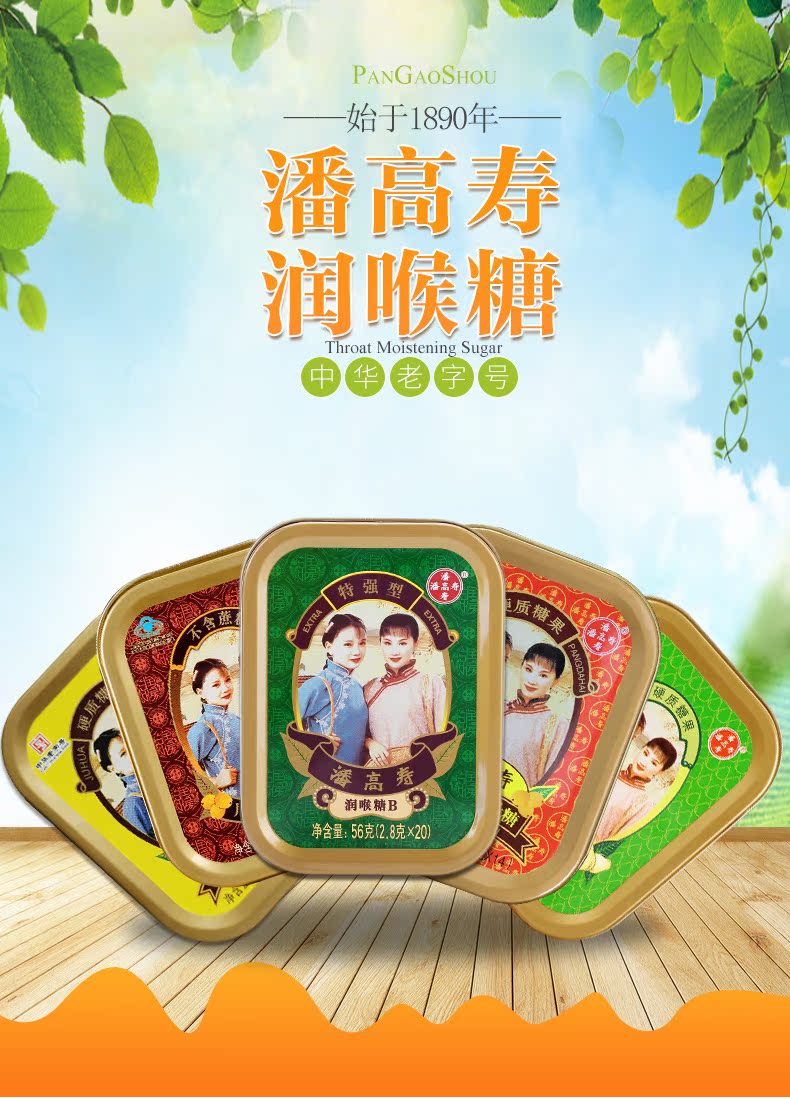 潘高寿品牌,4种口味,复古铁盒,无糖含片,胖大海润喉糖组合,不加蔗糖,不含添加剂,享受自然好味道!