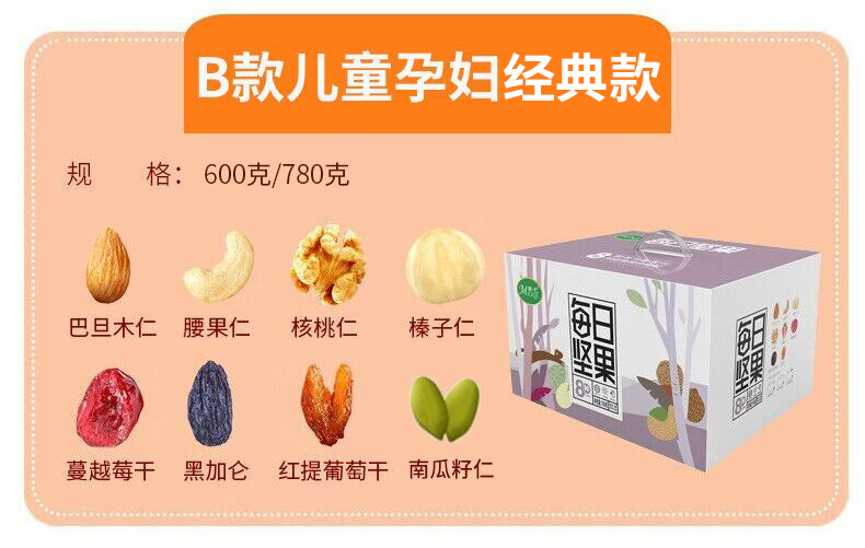 每日坚果混合大礼包孕妇专用780克儿童零食干果仁礼盒小包装30包