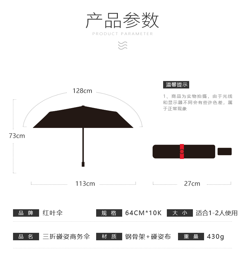 【红叶】多种款式可选!随心入包,方便随行!大伞在手,大雨无忧。全钢10骨,强力拒水。高密度肤感黑胶,加强防晒,紫外线阻