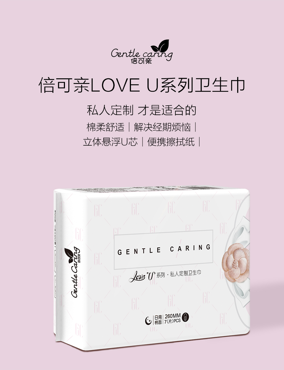 倍可亲Love U卫生巾U芯船型防侧漏姨妈巾日夜用混合装薄款3包装