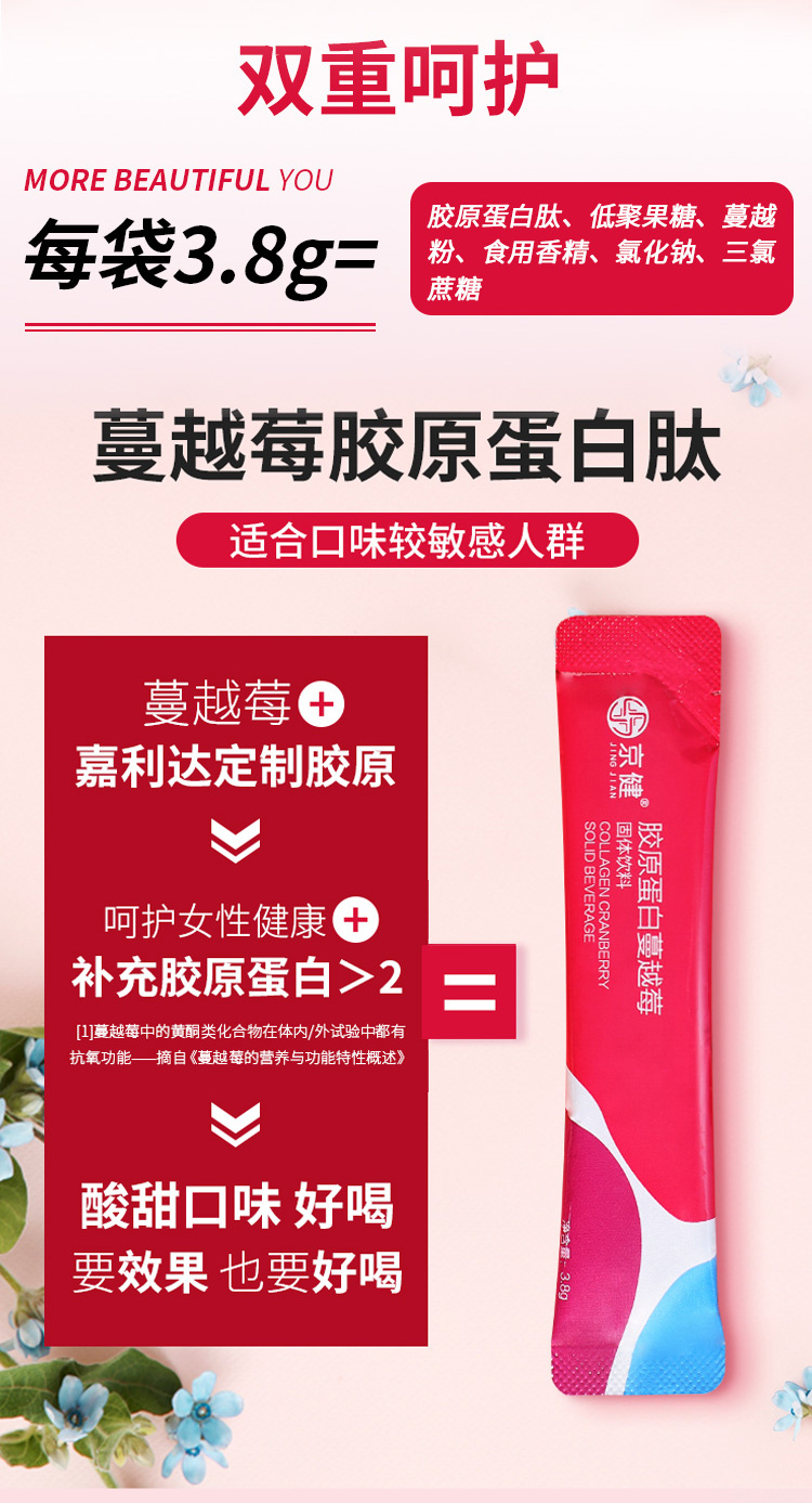 全球三大胶原蛋白生产商之一嘉利达定制胶原+蔓越莓口味,好吃易吸收,深入肌肤,锁住水分,素颜也很美丽!衰老不可逆,减龄才是王道!女神必备