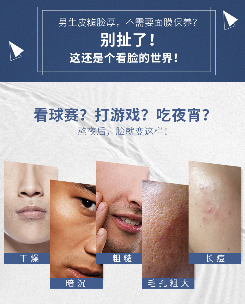 男士睡眠面膜免洗补水保湿专用收缩毛孔控油祛痘去黑头痘印增白