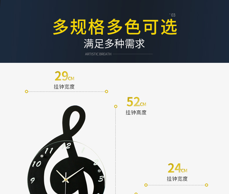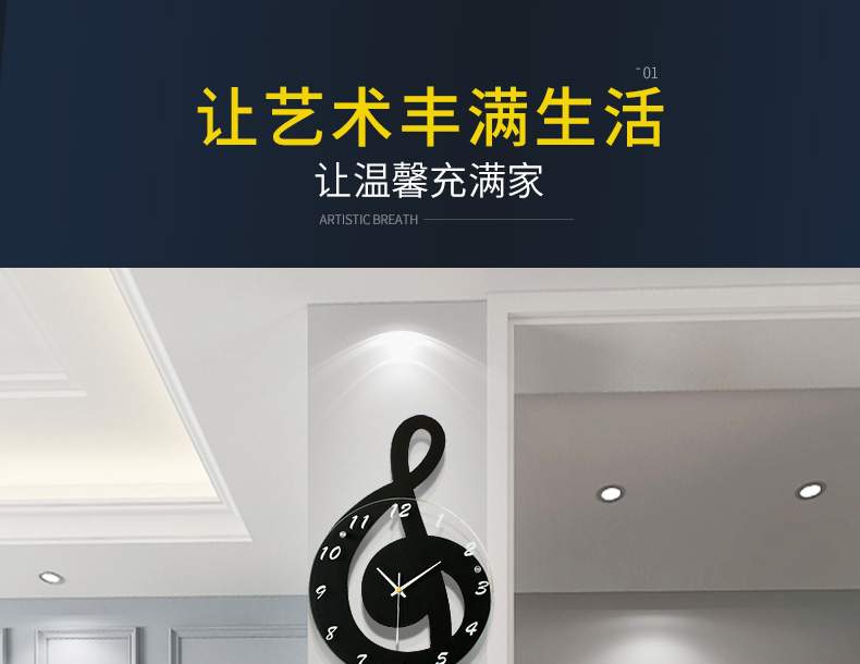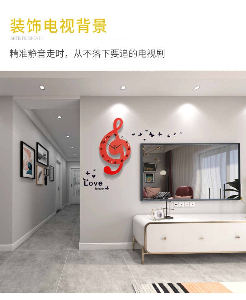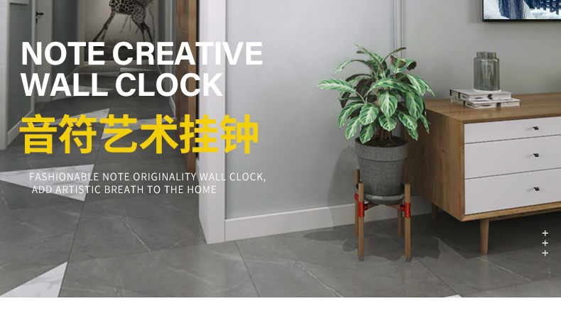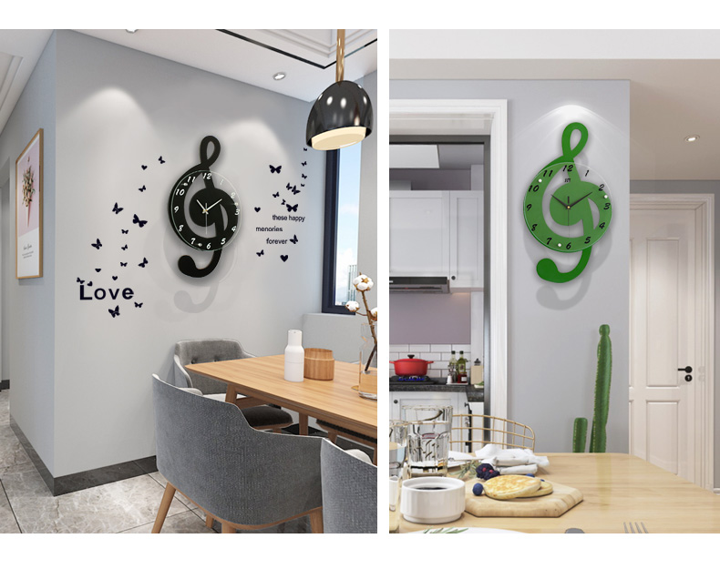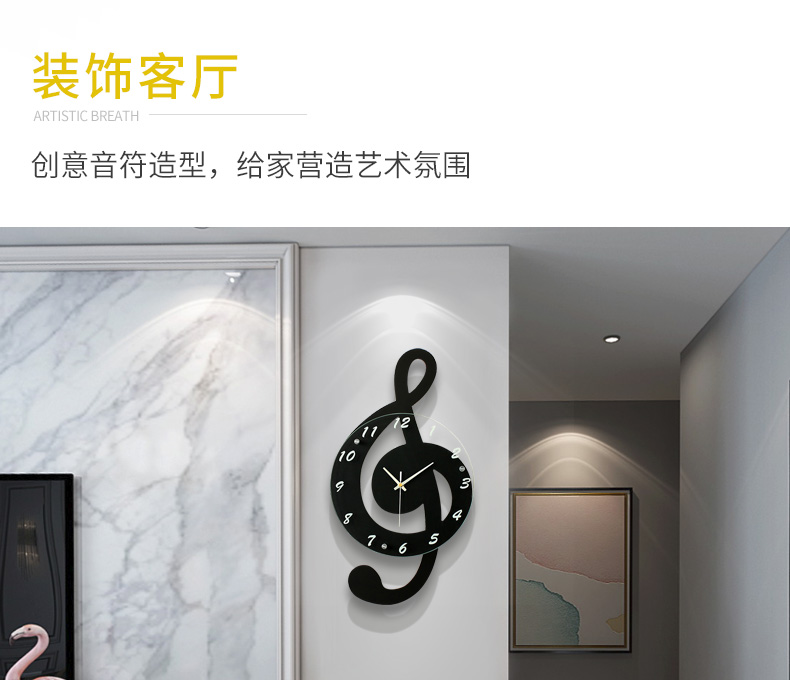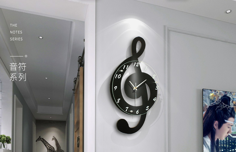 音符创意挂钟现代客厅家用钟表简约艺术挂表静音装饰时钟个性时尚