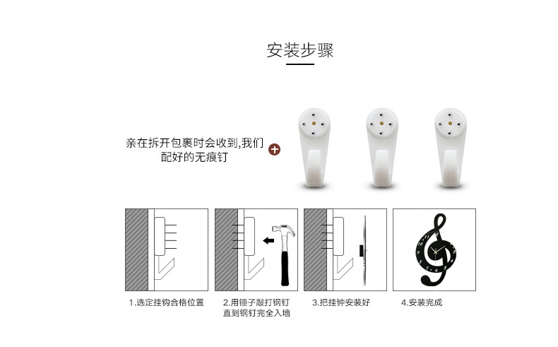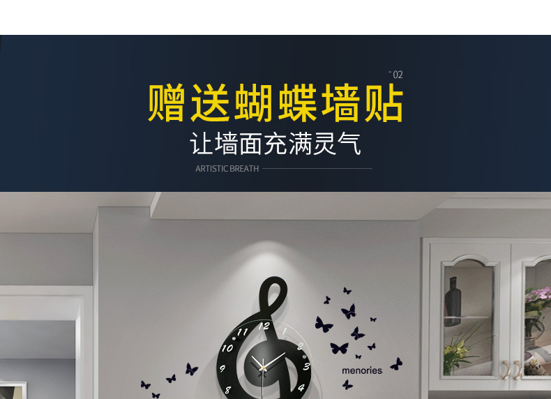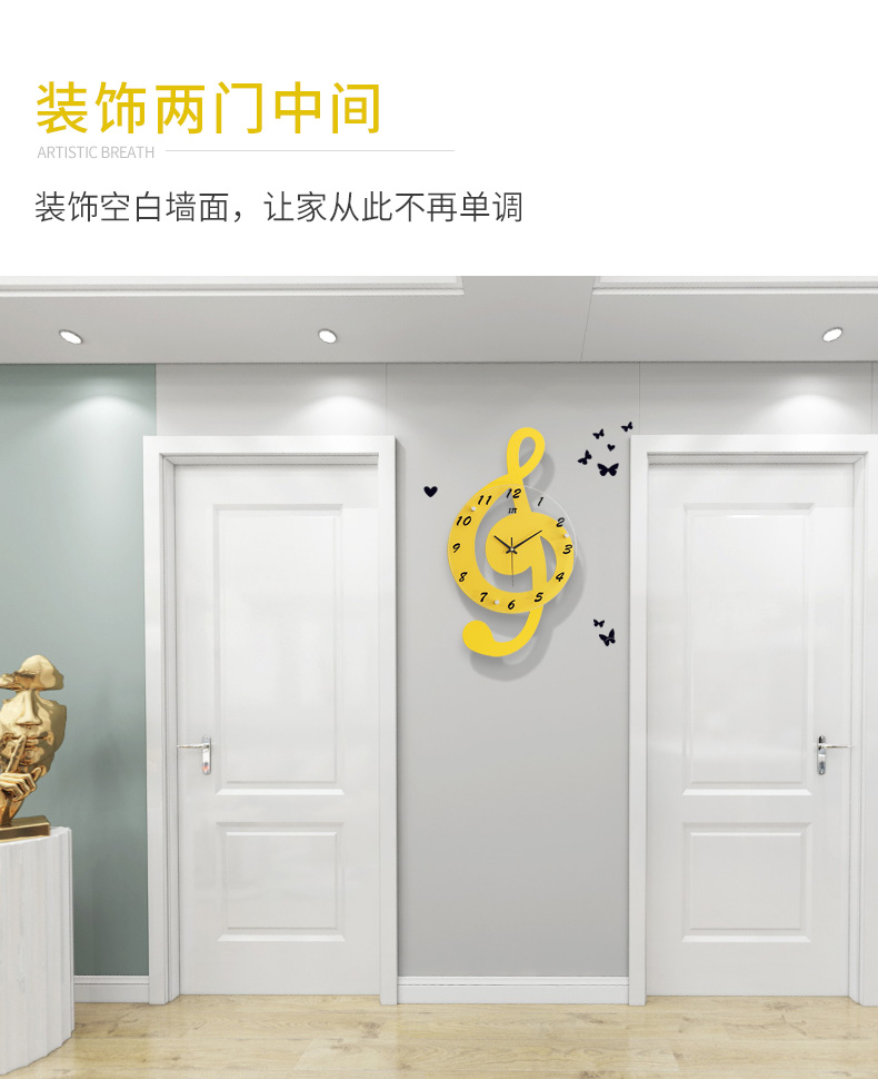 【送配套墙贴+挂钩+电池】创意音符简约百搭,机芯10年保质,高温烤漆,不褪色,不变形,无需打孔,随心挂,让艺术充满优雅生活!【赠运费险】