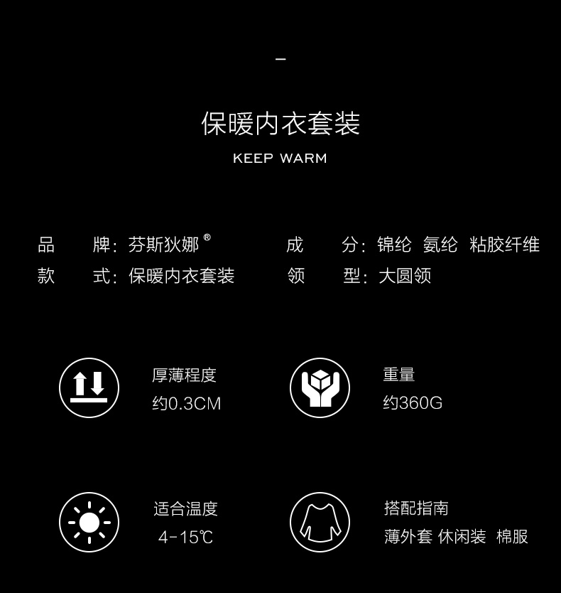 芬斯狄娜保暖内衣套装 薄款性感修身紧身圆领弹力女秋冬打底衫