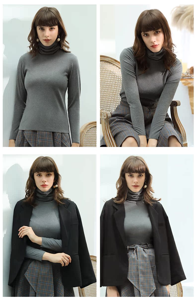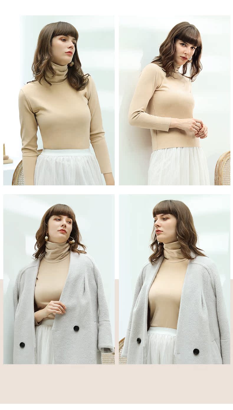 气质半高领长袖针织衫女打底衫,面料舒适,内里抓绒,贴身保暖弹性好,穿着舒适不紧绷,款式很潮,百搭不挑人!秋冬必备单品哦~