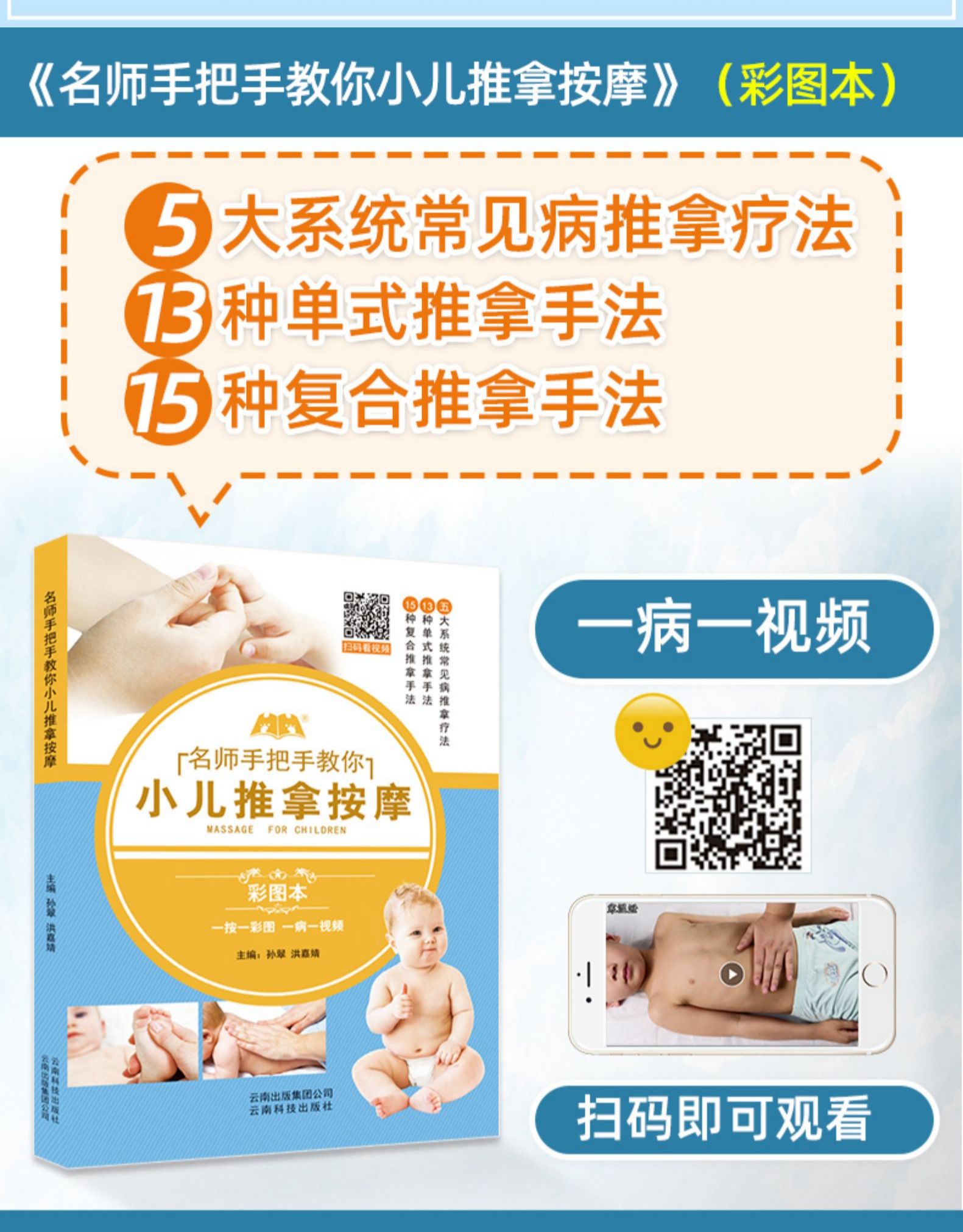【买就送,专家视频教学+穴位图+赠宝宝涂色书】小儿推拿按摩教材,详细讲解5大系统的常见病推拿手法,13种单式推拿手法,15种复式推拿手法,拒绝抗生素,超火的家庭自学按摩推拿,让宝宝健康成长!