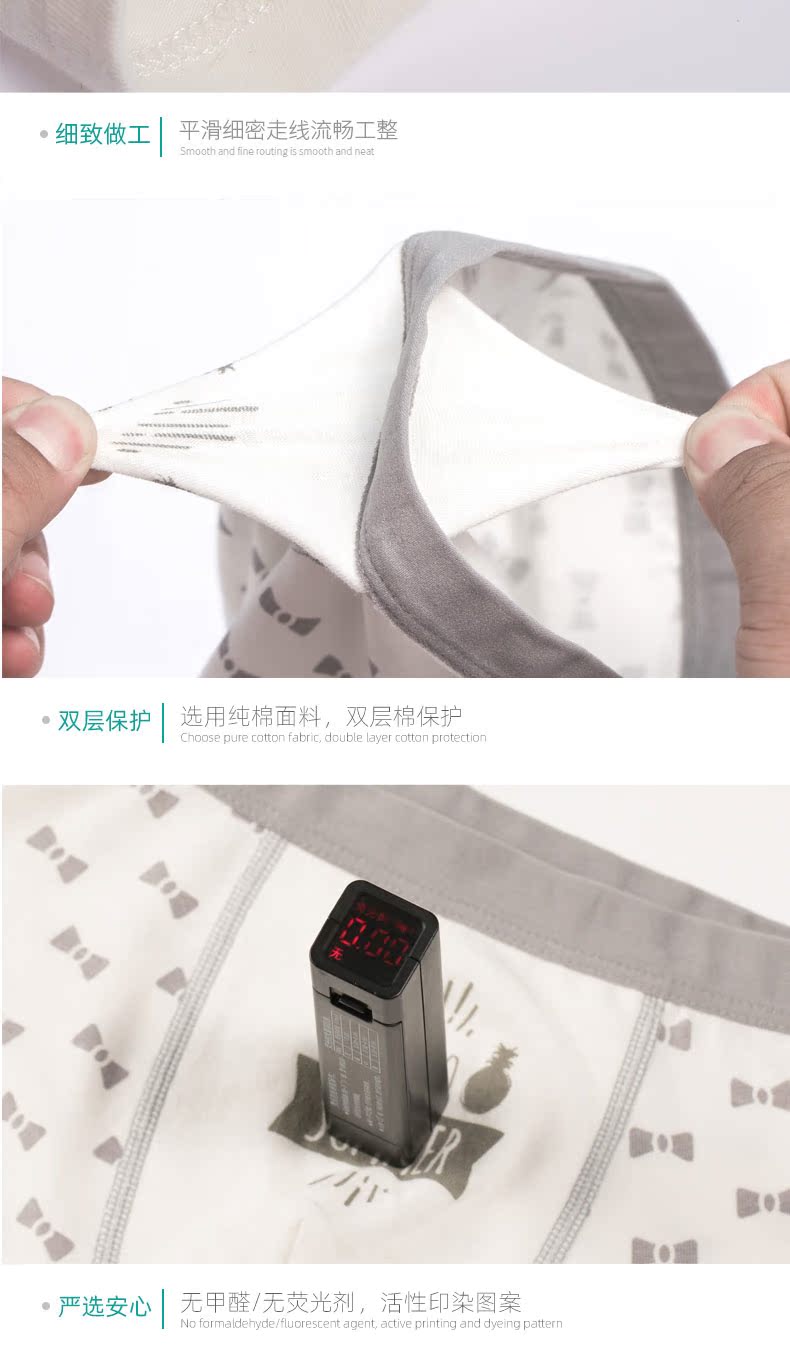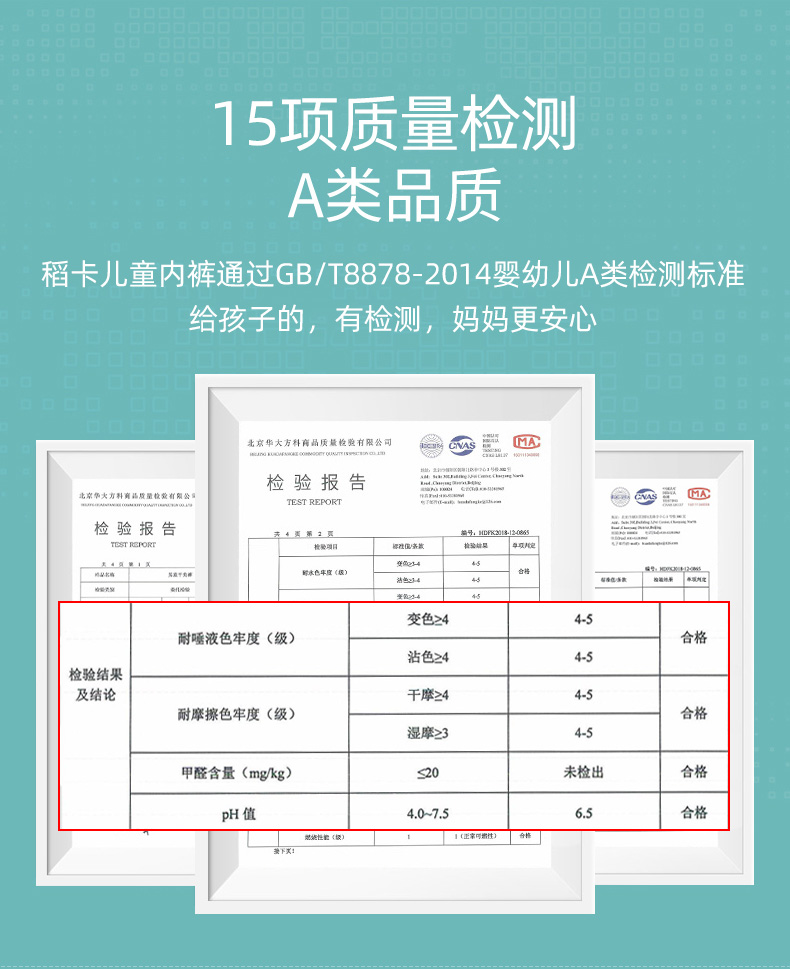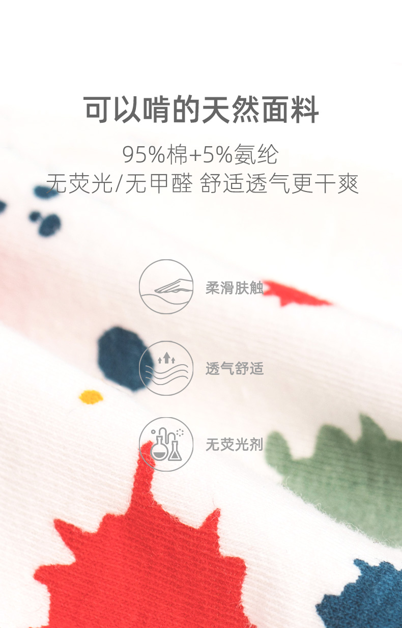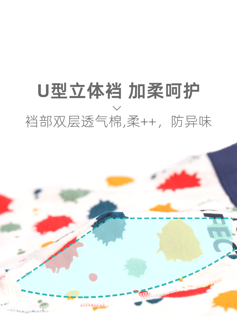 全棉A类无甲醛面料,亲肤舒适,透气吸湿,宽松囊袋,活动自如,超宽全弹力腰带,健康不掉色,舒适不紧绷!宝宝舒服,妈妈放心!
