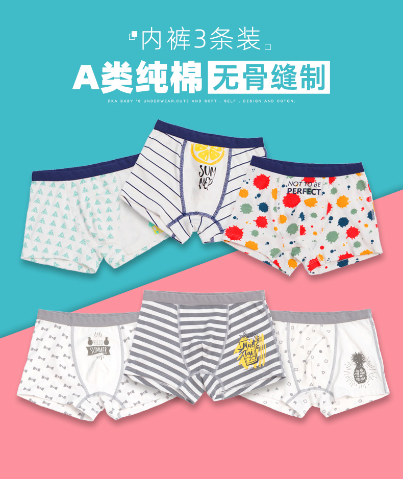 儿童纯棉内裤男童平角12男孩3岁中小大童全棉四角100%青少年短裤