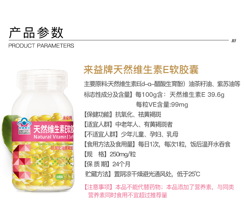 【买就送30粒VC】来益官方店,正品保证,天然维生素E,配合油茶籽油与紫苏油,晶莹剔透,有效祛黄褐斑,抗氧化抗衰老,呵护美丽女神!【赠运费险】