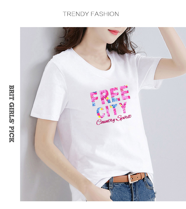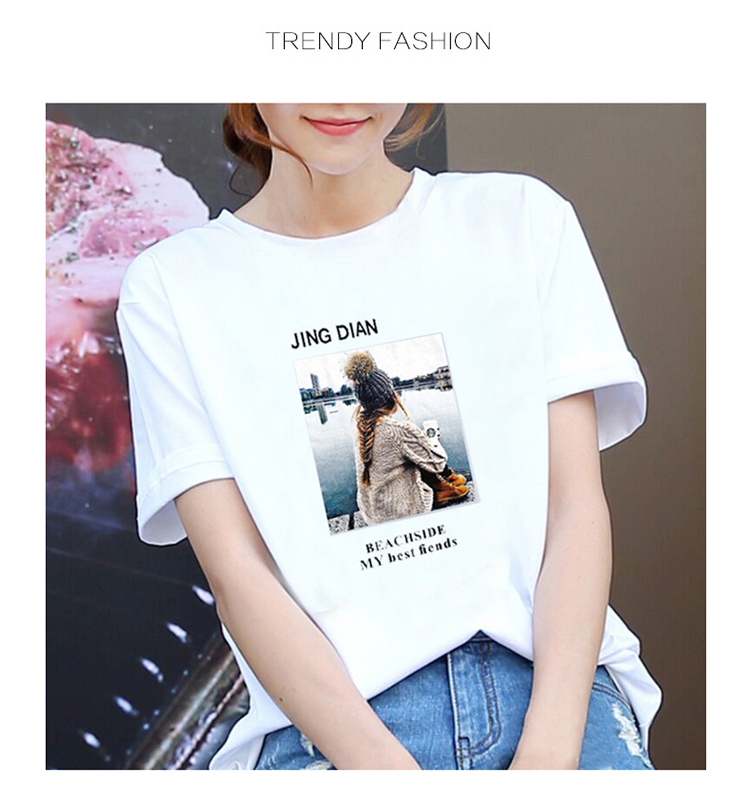 t恤女纯棉韩版女装百搭短袖学生宽松显瘦印花圆领上衣2019年新款