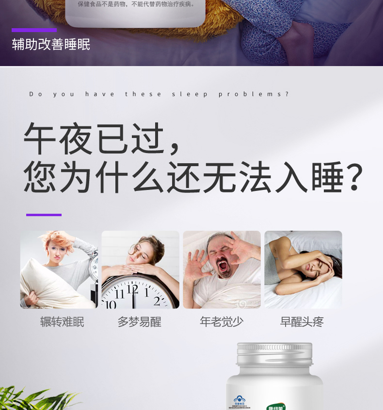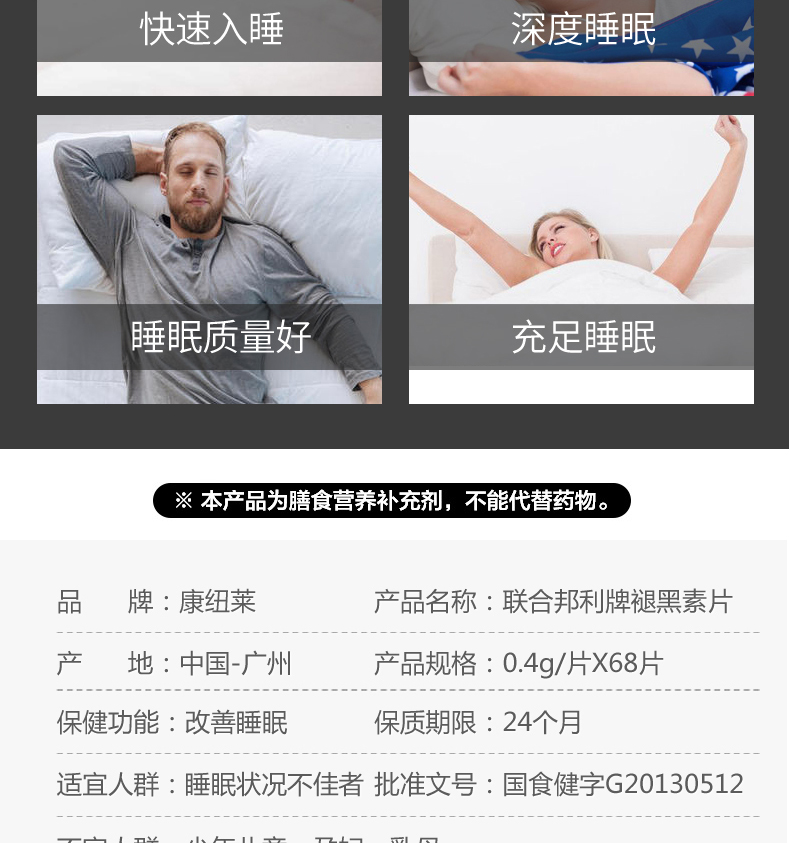 改善睡眠 康纽莱 褪黑素 帮助熬夜睡眠不足成人睡觉助眠入睡神器