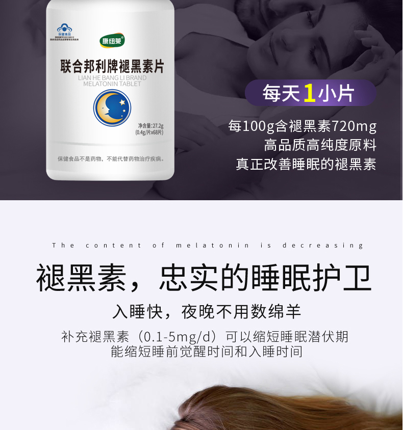 【康纽莱】买1送1改善睡眠136粒康纽莱褪黑素帮助男性女性睡觉成人助眠,熬夜,失眠,倒时差必备,陪伴香睡一整晚,经【国家食品药品监督管理局】批准,每份都有产品品质检测报告