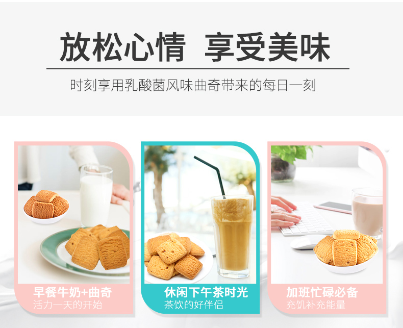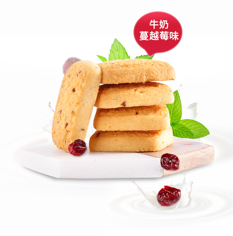 华美乳酸菌风味曲奇饼干320g休闲零食办公室食品糕点咖啡蔓越莓