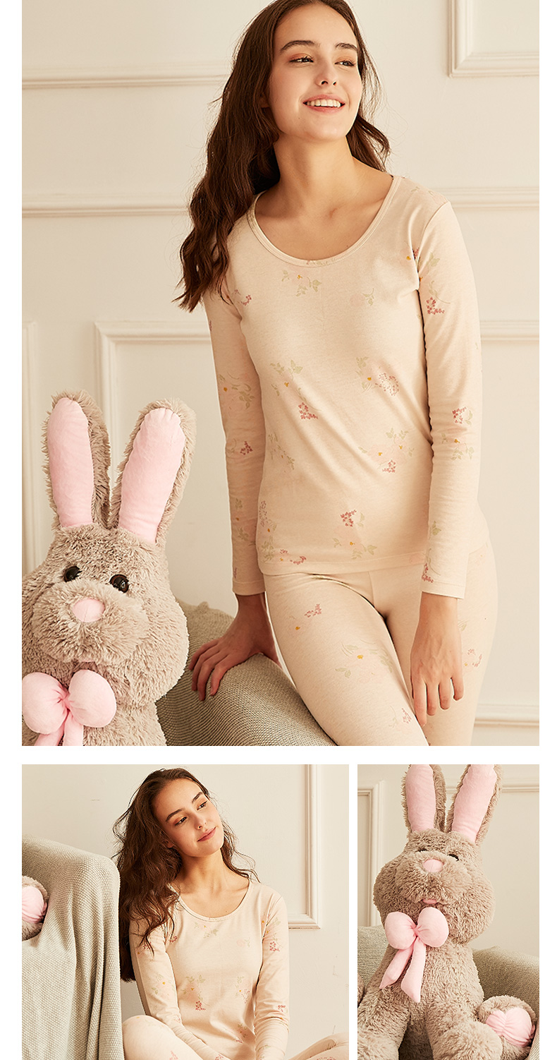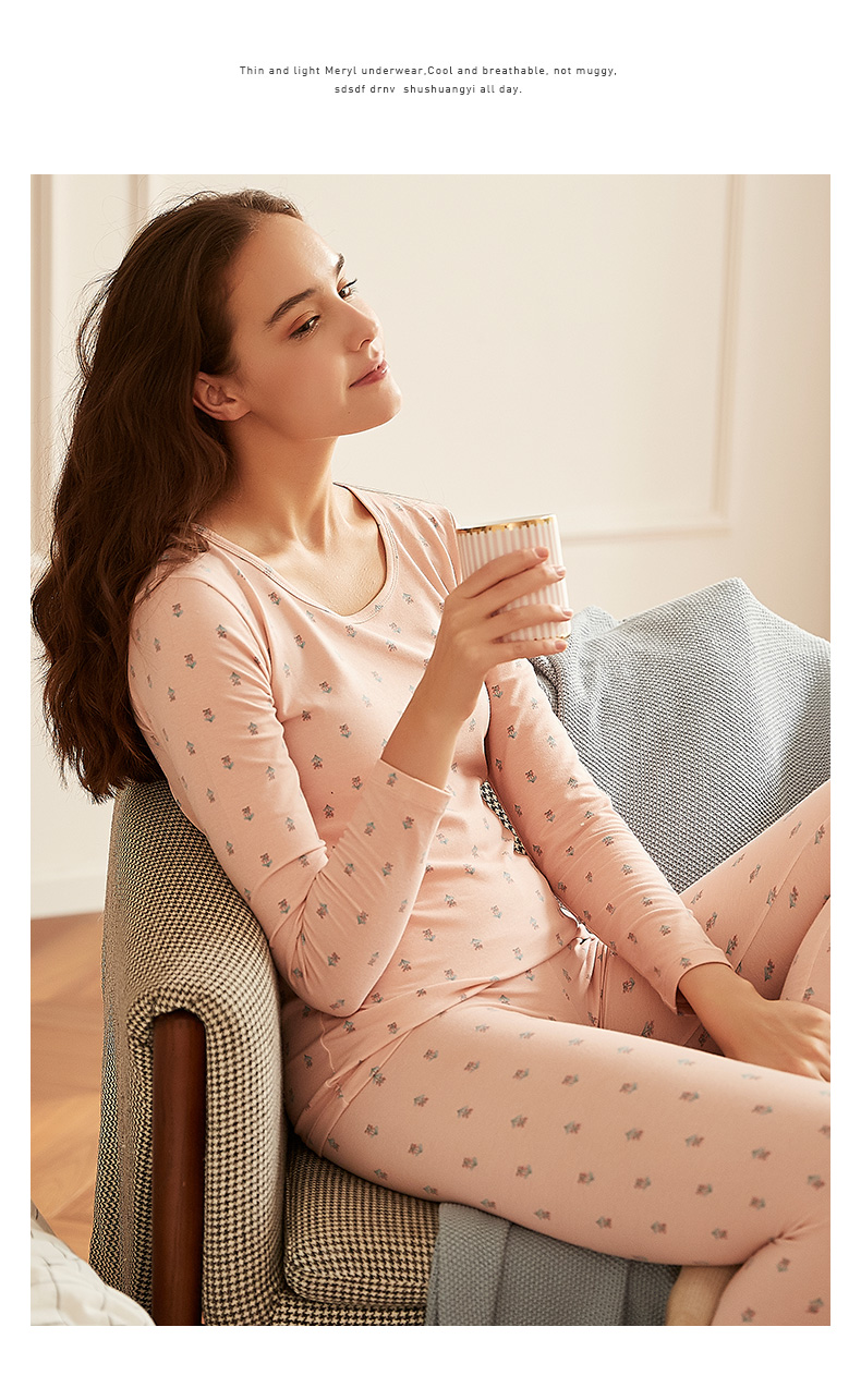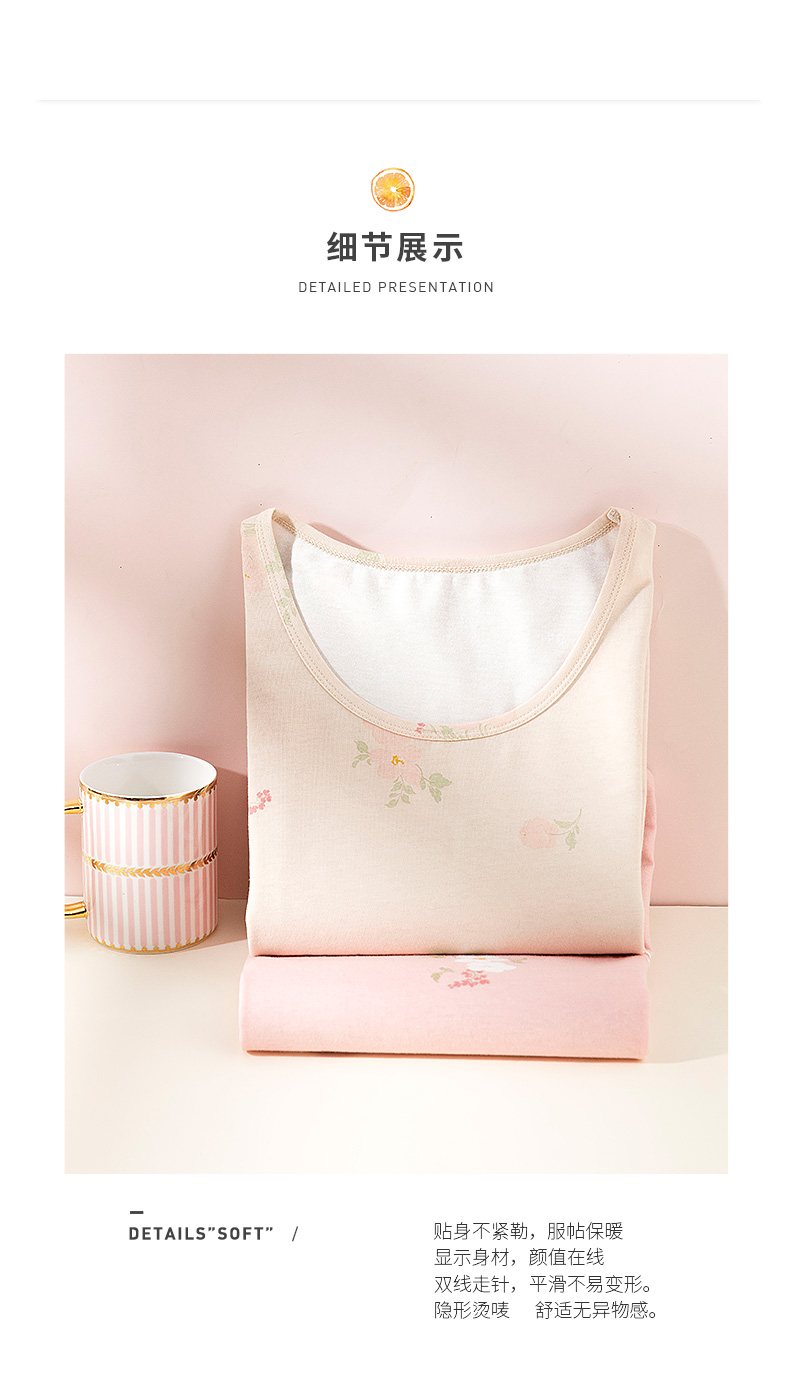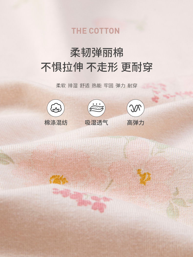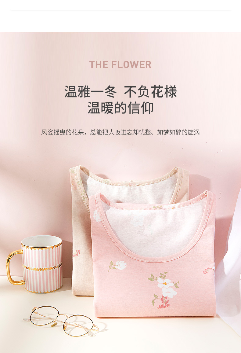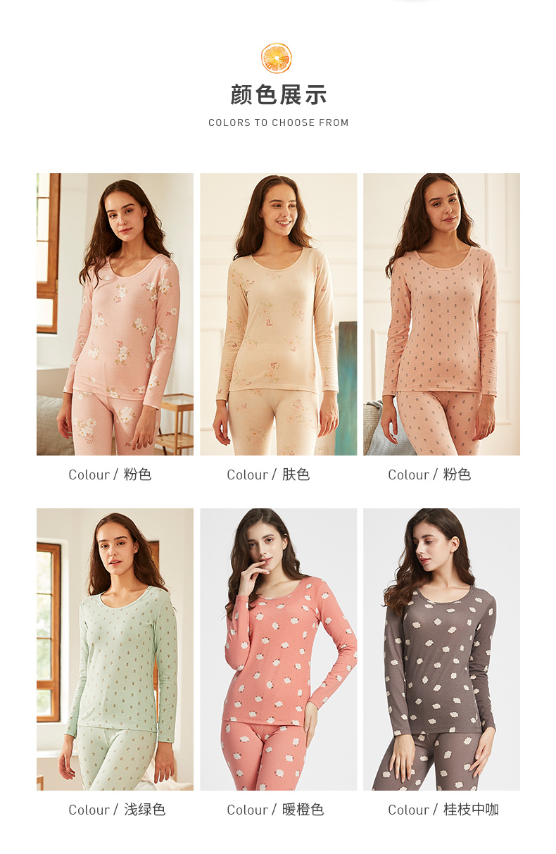 柔韧弹力,不走形,更耐穿,环保健康不褪色,贴身保暖又透气,不闷汗不臃肿!甜美印花图案,少女心满满啊,一套高颜值的保暖内衣~