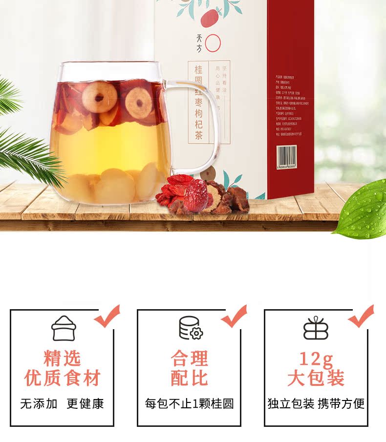 【天方养生茶】桂圆、红枣、枸杞、天然原料,完整饱满果肉,口感香甜怡人,既可干吃又可泡茶,女生补气血必备茶哦,养颜补气血,好吃又好喝,每天一杯,素颜也被老公夸上天~【赠运费险】