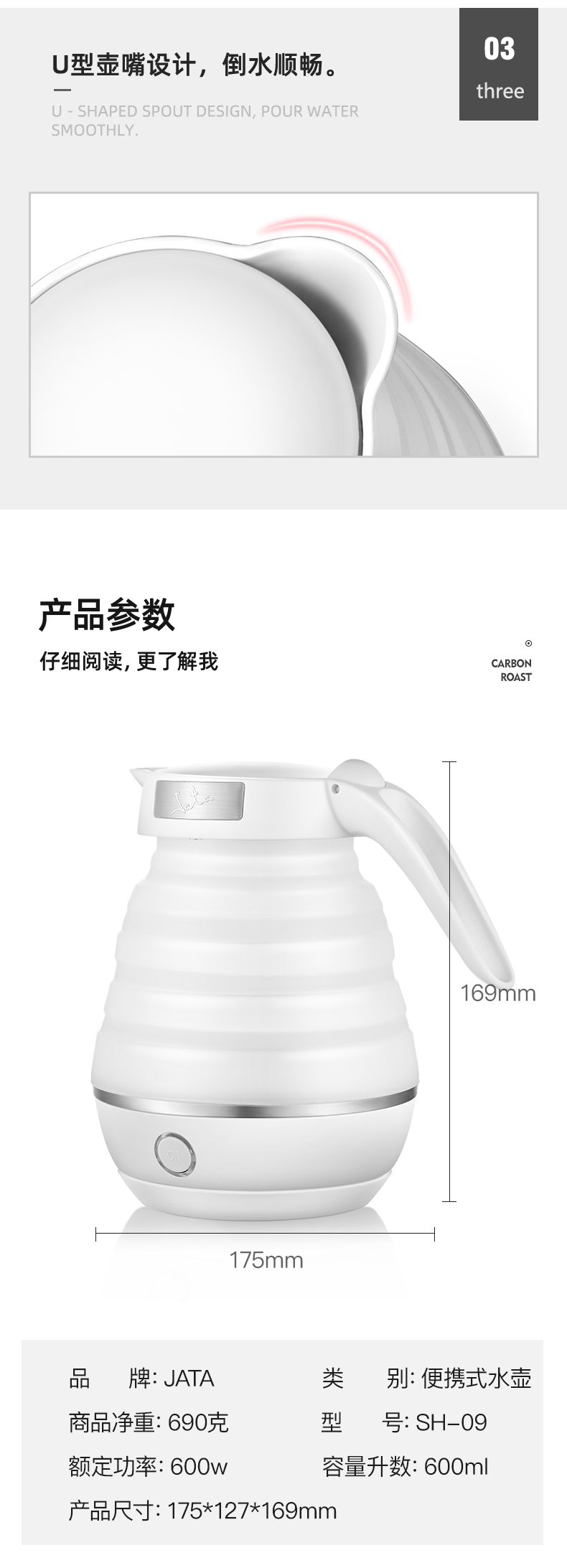 西班牙Jata/哈嗒 分体式折叠烧水壶旅行便捷宿舍学生婴儿电热水壶