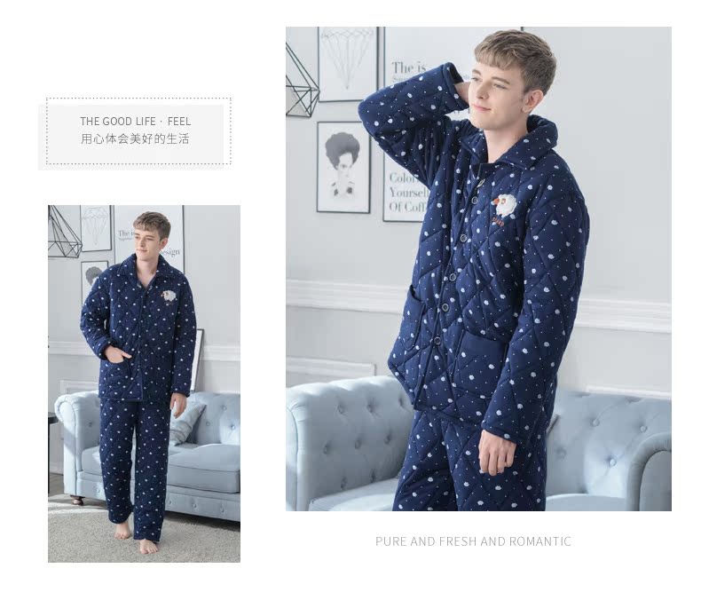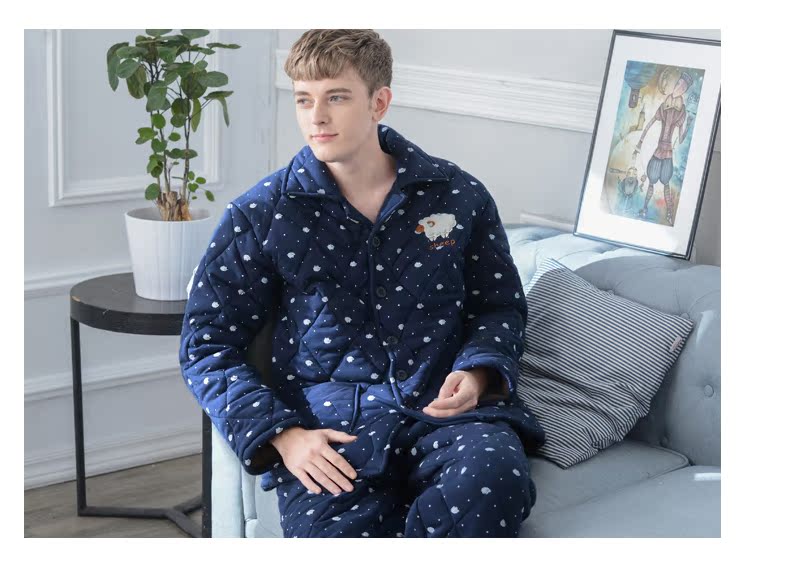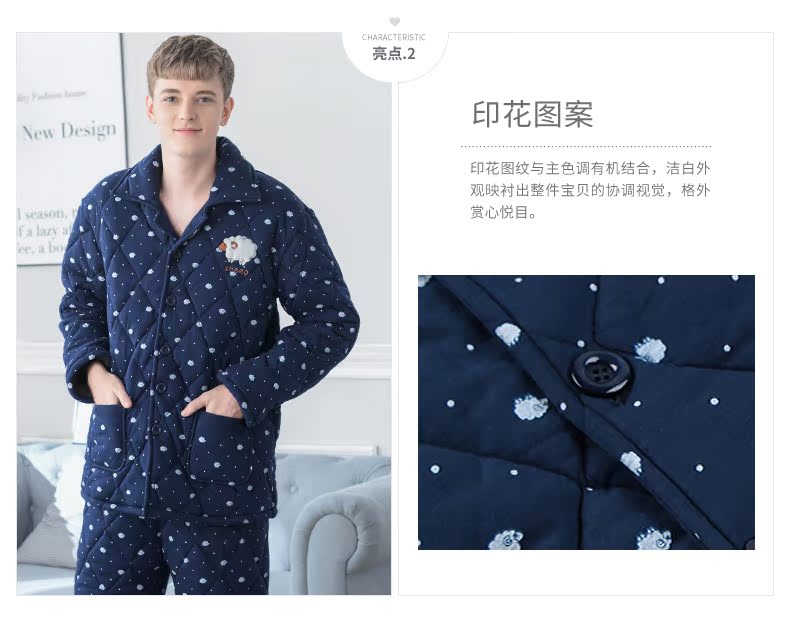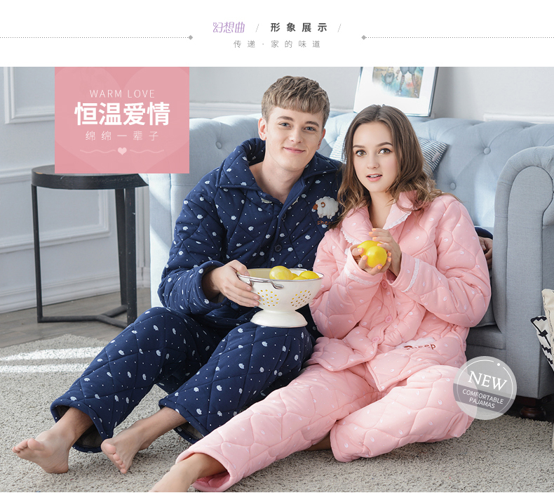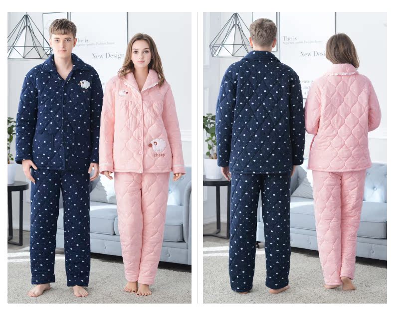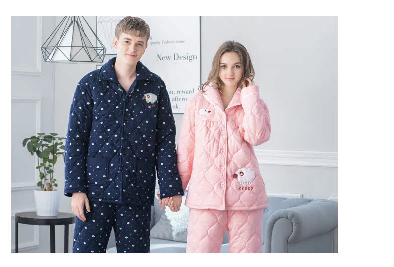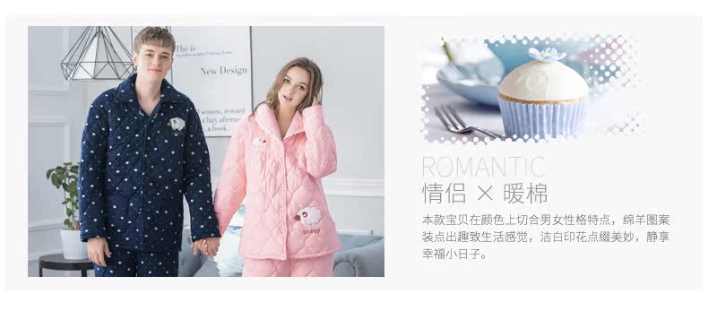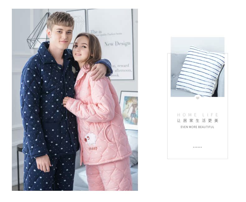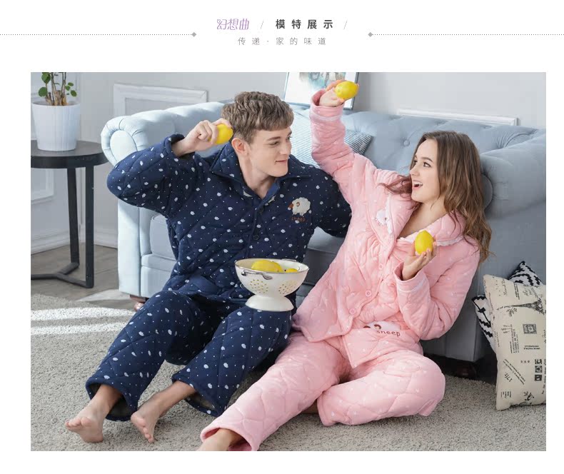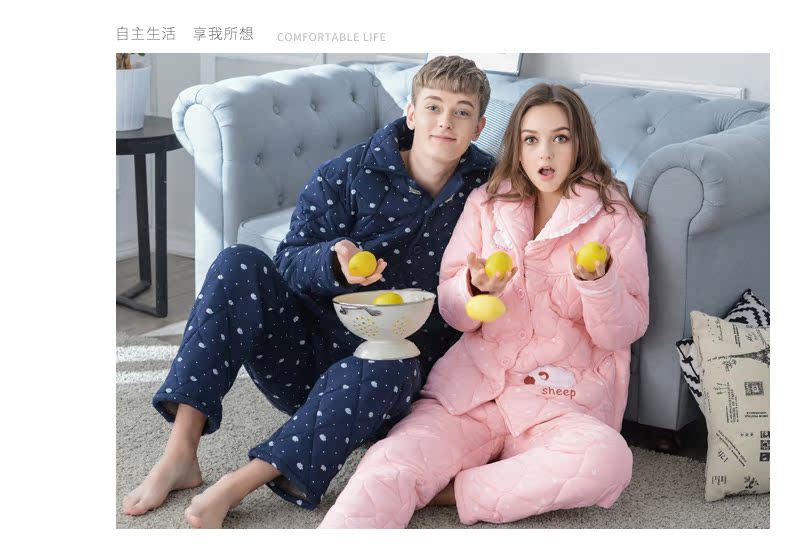 情侣睡衣女冬长袖夹棉韩版加厚大码保暖珊瑚绒棉袄冬季男士家居服