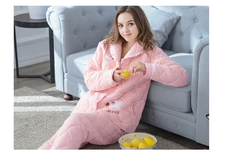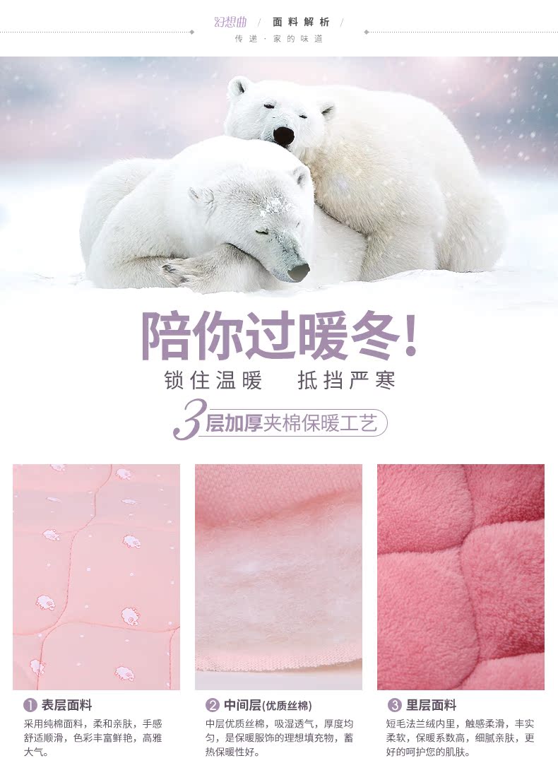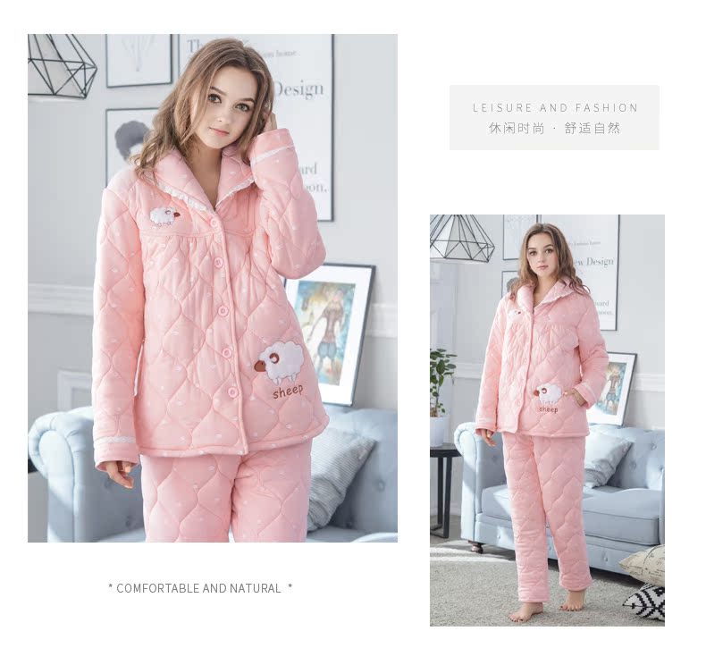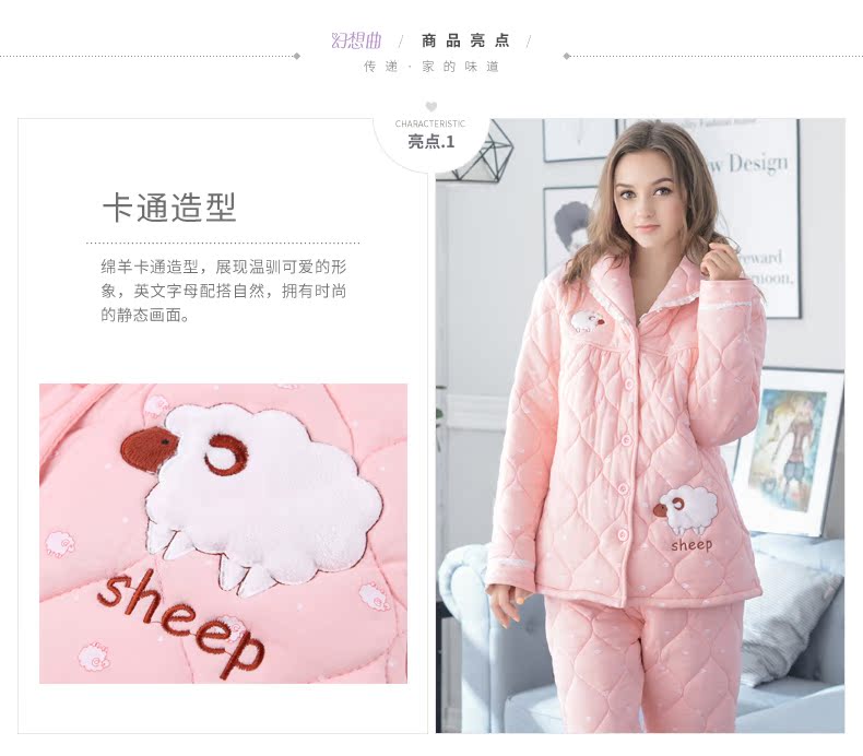 法兰绒夹棉三层加厚,超薄柔软,保暖舒适,情侣睡衣女粉色款萌萌哒满足你的少女心,为您提前保暖守护!【赠运费险】