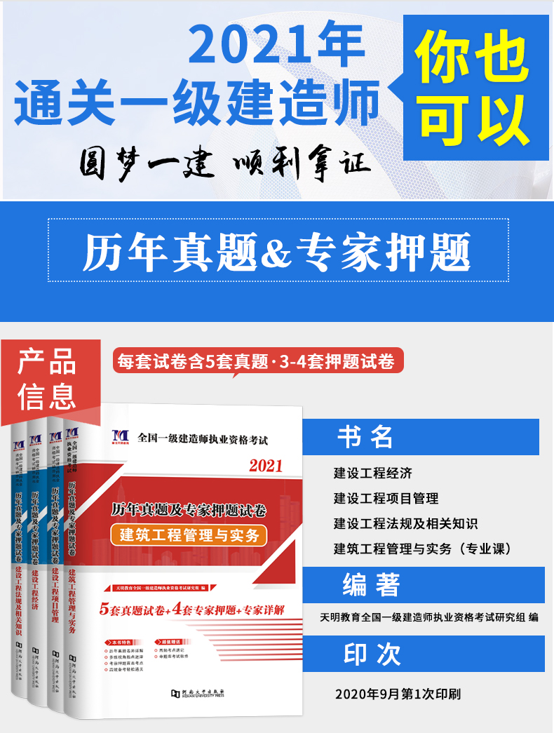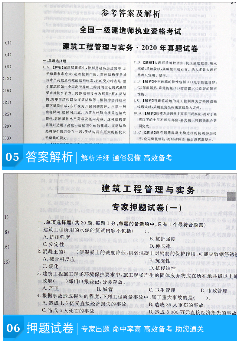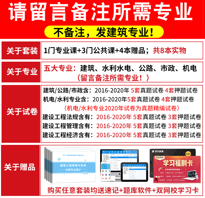 【送视频课件+题库】2020一级建造师资格考试用书历年真题试卷押题解析建筑工程管理与实务 一建市政机电水利水电公路建筑专业备注