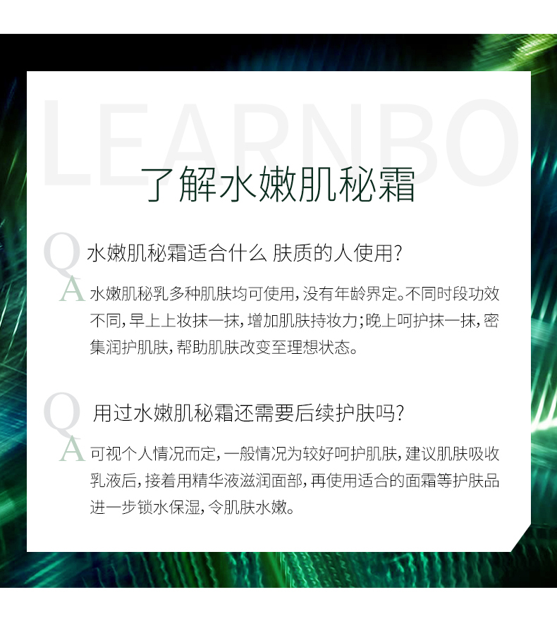 愈颜经典,修护焕新。活水+锁水+修护,霜体滋润细腻质地,不厚重不油腻,帮助改善干燥,令肌肤保持水润柔滑,光泽透亮,用完以后就再也不想用其他面霜了!
