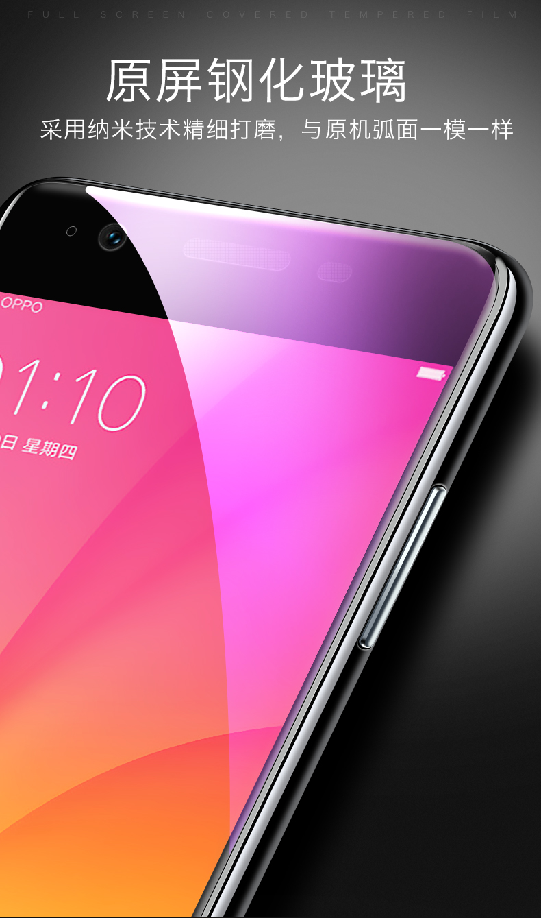 oppor9s钢化膜oppor11手机膜r11s贴纸r9抗蓝光plus软边刚化膜保护oppo无白边全屏覆盖防摔玻璃膜曲面保护包半