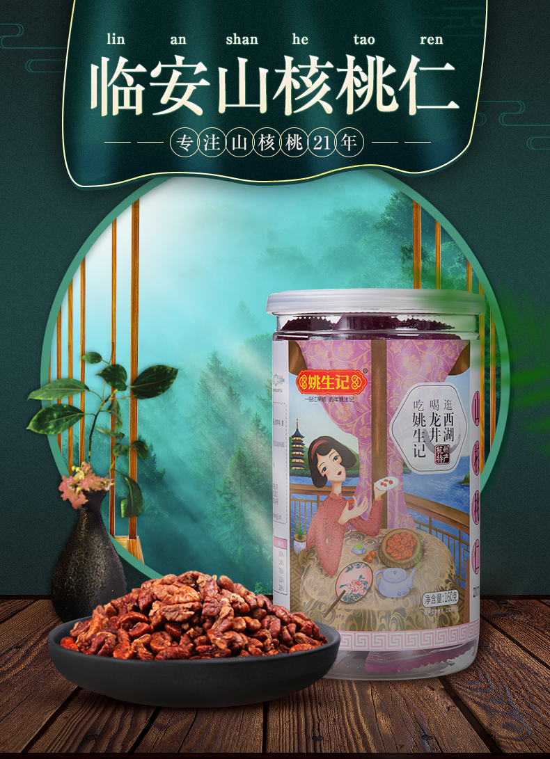 姚生记临安山核桃仁小包新货杭州特产罐装小核桃仁胡桃肉坚果零食