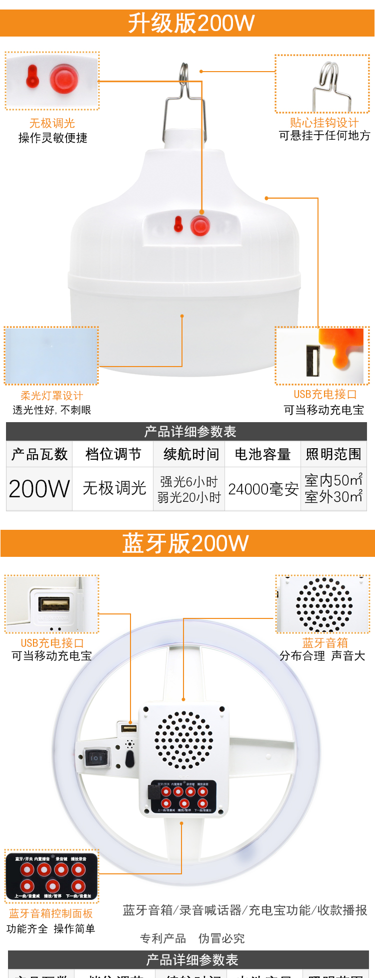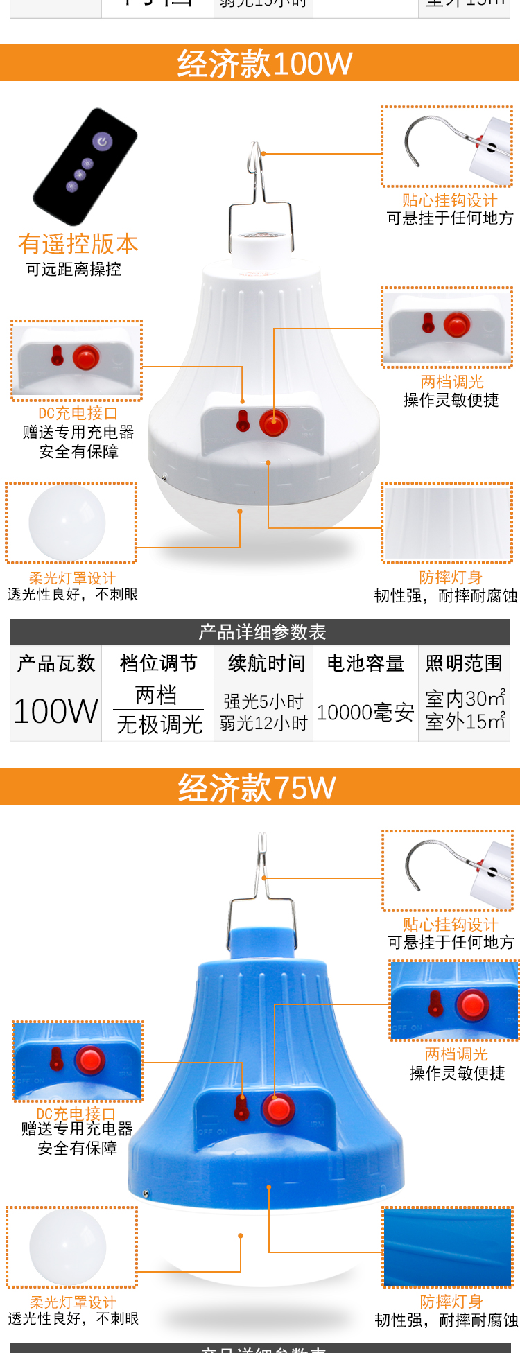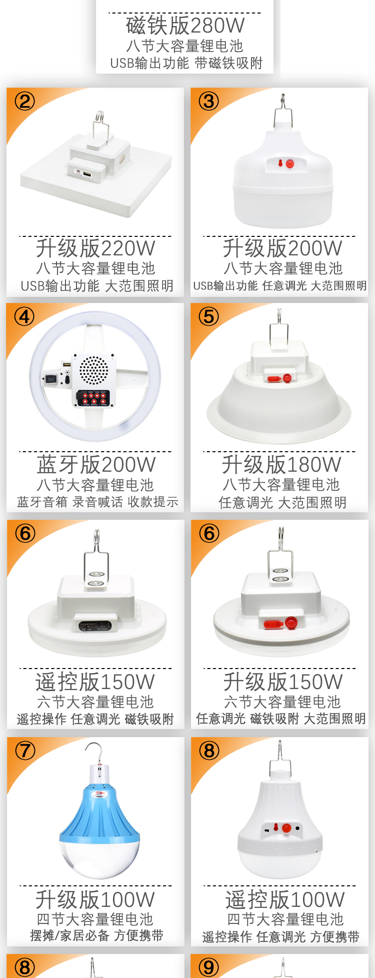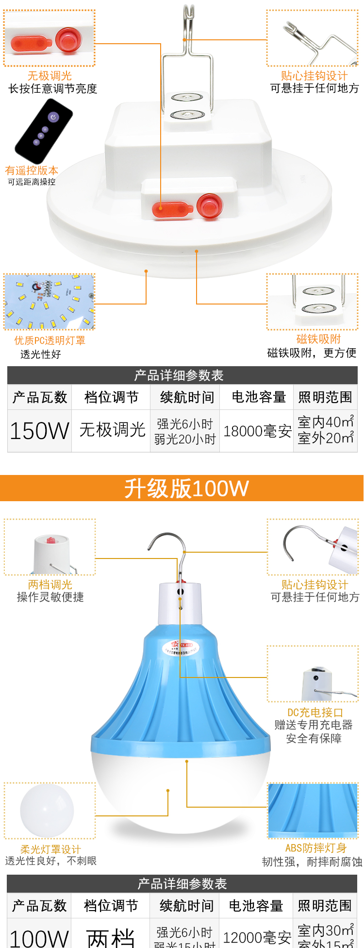 泰中星充电LED灯泡超亮移动夜市摆摊灯地摊灯应急家用户外无线灯
