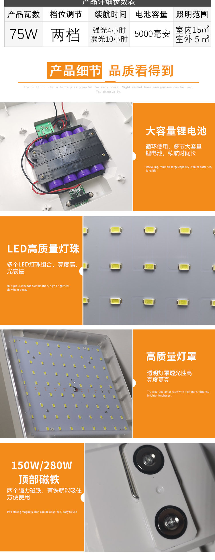 【全国包邮】【赠运费险】送USB充电线!LED照明神器!电量持久,省点又省心,夜市摆摊、家庭预防停电必备,轻松解决没电的烦恼~