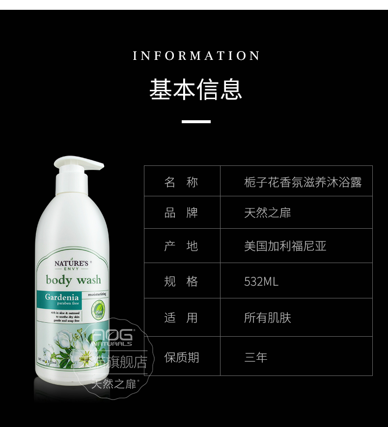 美国进口天然之扉栀子花香沐浴露男女持久留香家庭装乳液保湿滋润