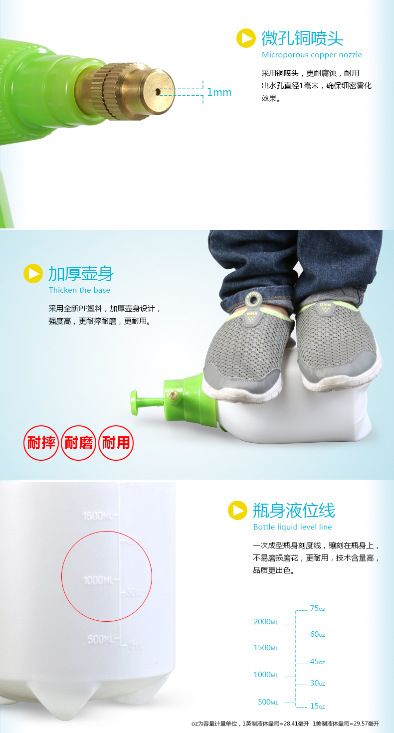 市下2L手持小型办公加厚喷头氟胶喷壶家用园艺消毒气压式喷雾器