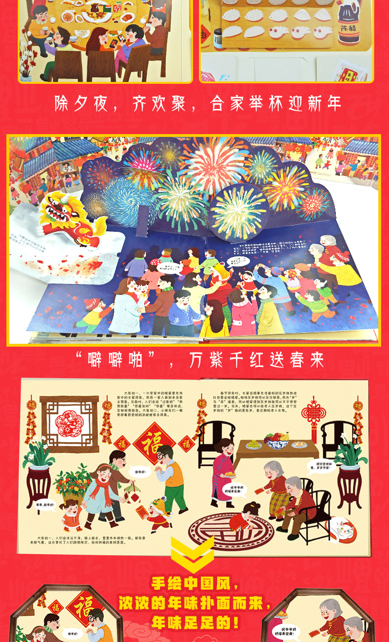 3D立体图书,揭秘中国传统佳节春节,介绍除夕到十五习俗,了解过年的由来,精美翻翻页,让孩子学习知识,养成阅读好习惯~
