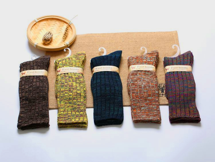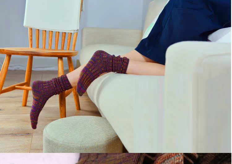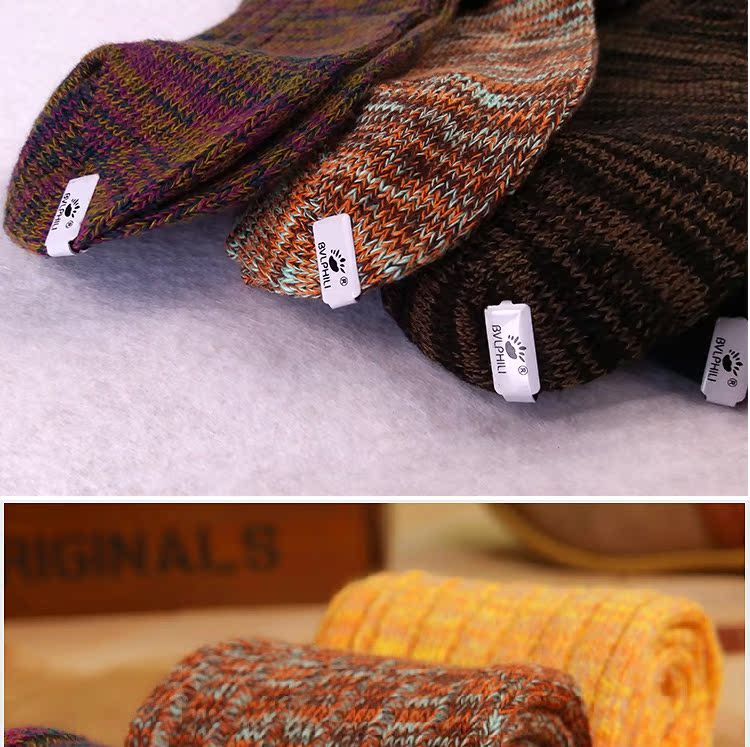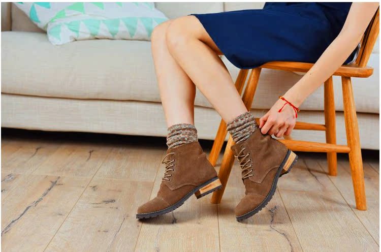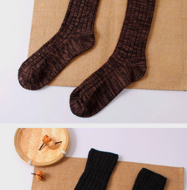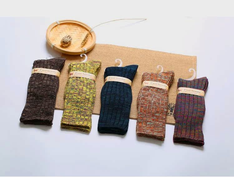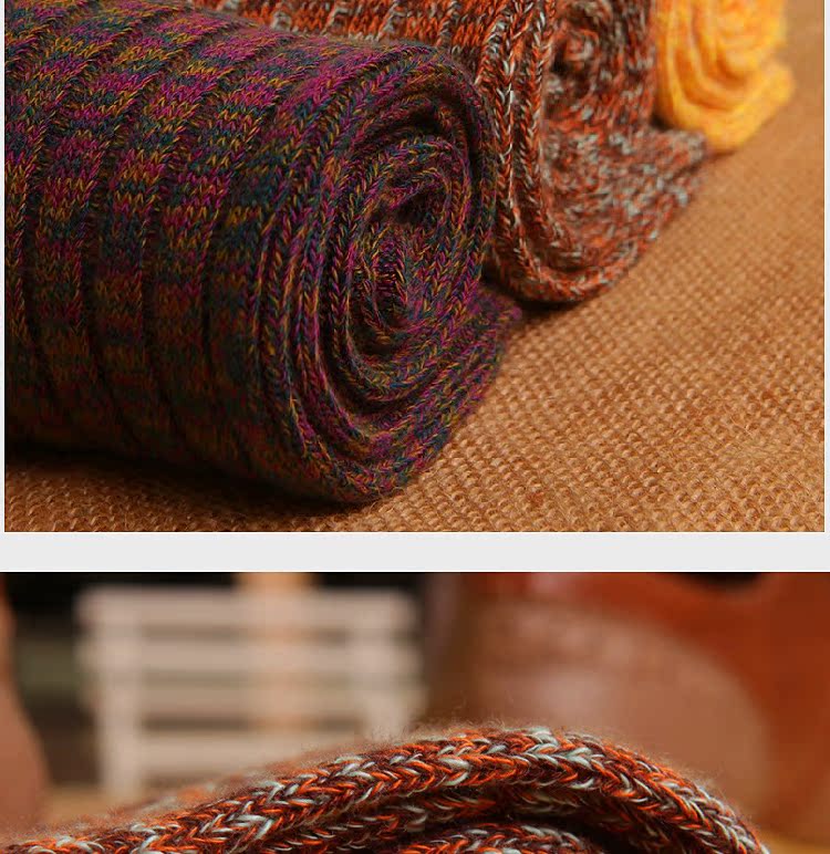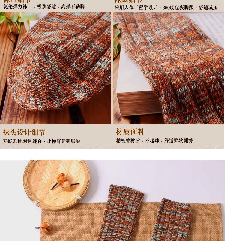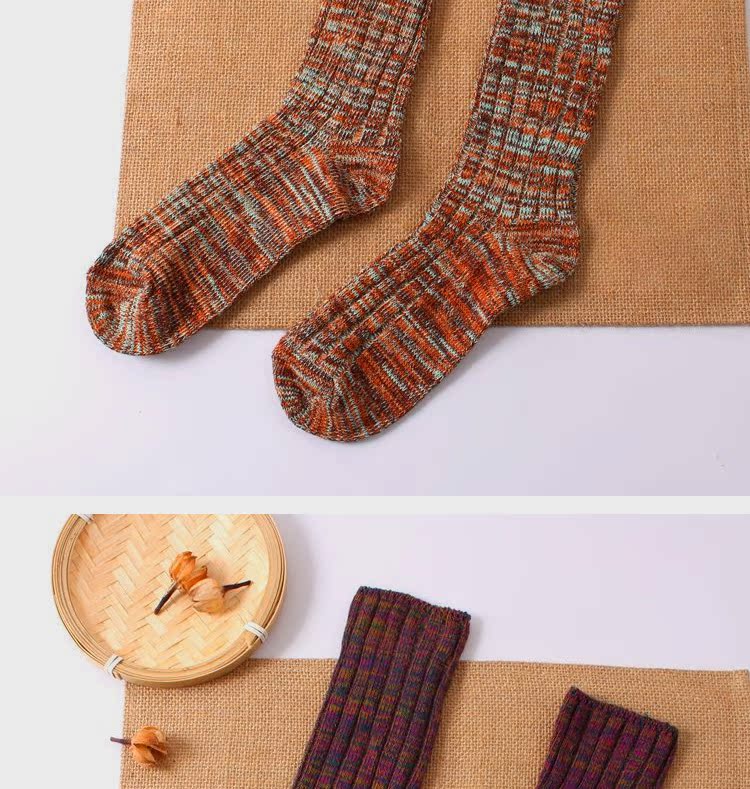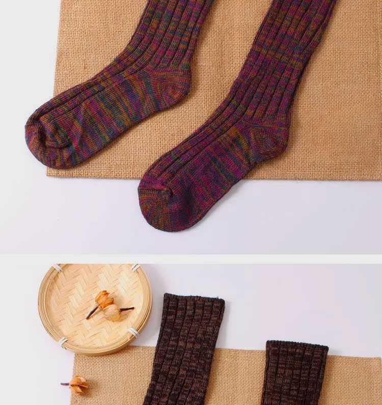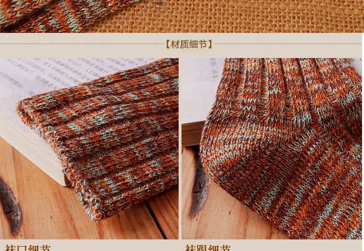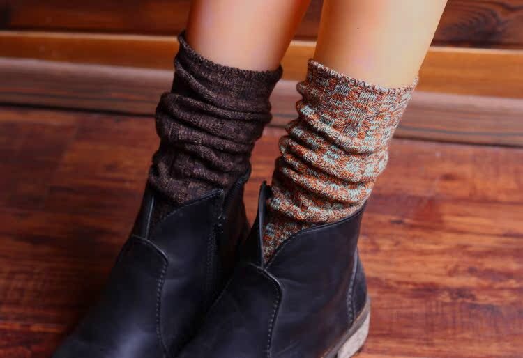 堆堆袜配短靴秋冬高筒加厚保暖棉线复古双色防臭袜子