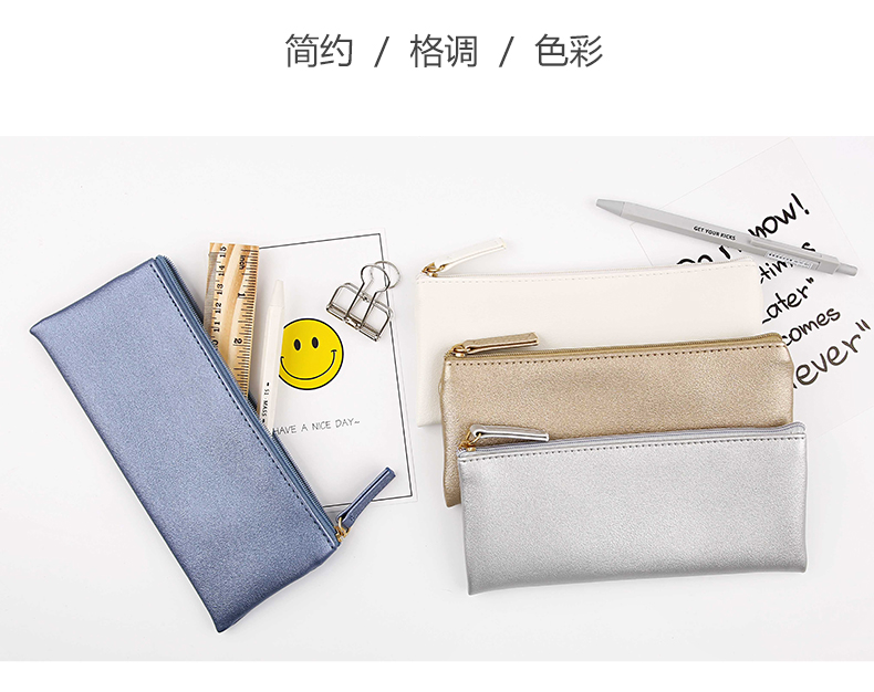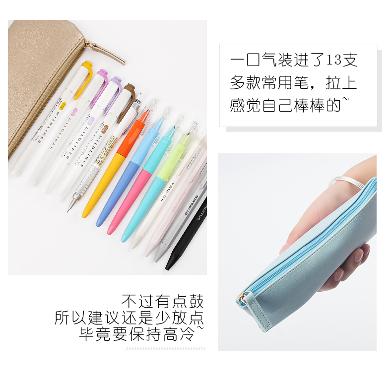 【赠运费险】简约、格调、色彩,全部都有的笔袋。PU软皮、质地柔滑、纹路细腻、不易破损。韩版简约大容量,可做笔袋可手包,也可做化妆包,装的东西不止一点点哟,赶紧先囤着!