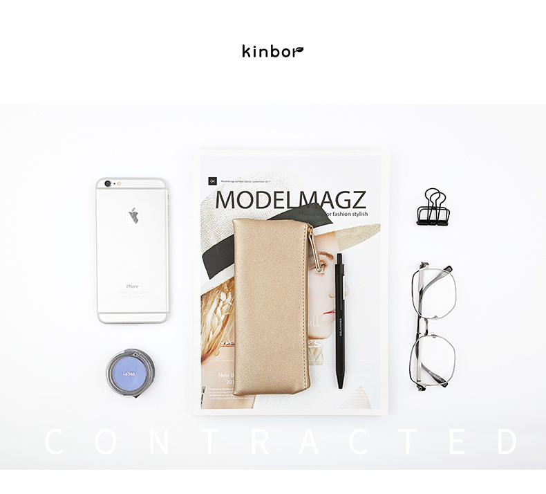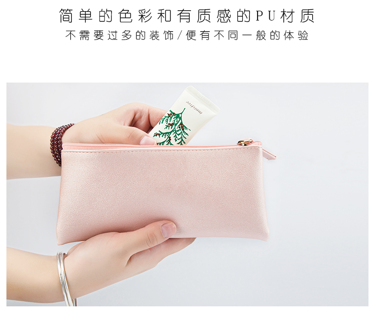 kinbor笔袋女韩国简约创意PU手包化妆包文具盒简约大容量学生笔袋