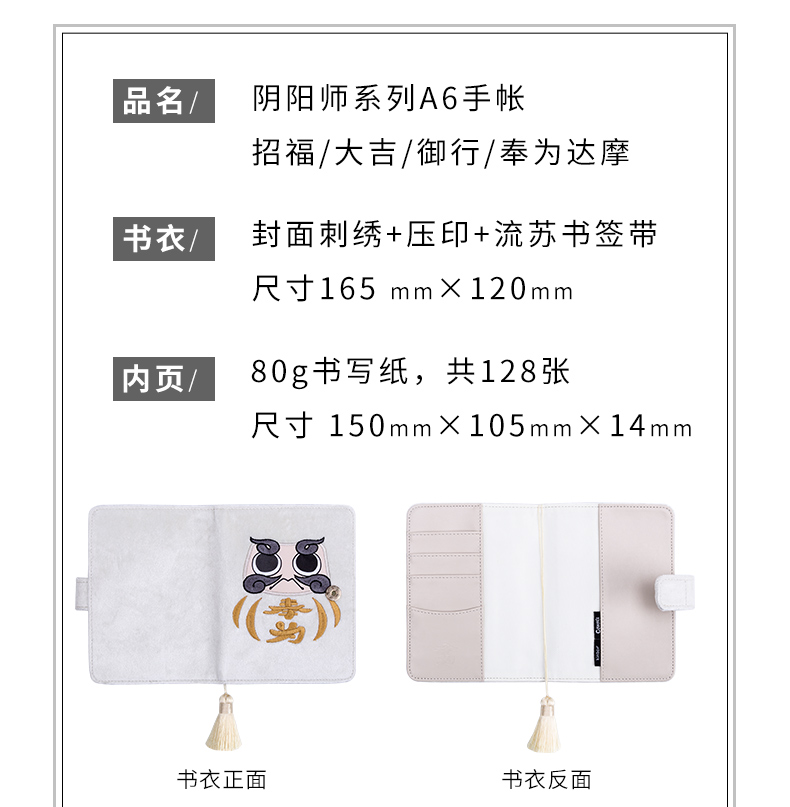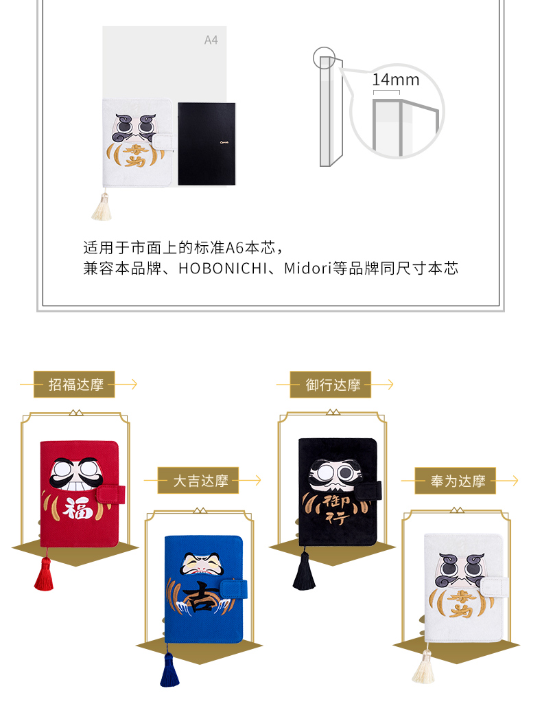 kinborX阴阳师【新品限定】a6手帐本招福达摩手账大吉达摩日系和风日程计划本布艺刺绣记事本笔记本子