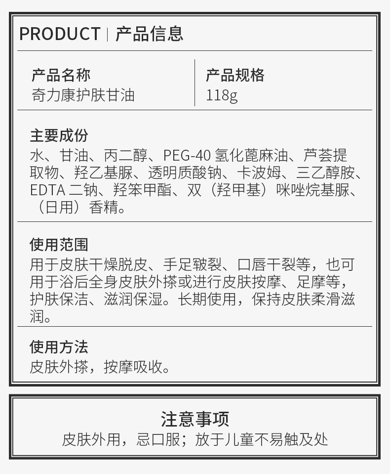 纯正品奇力康美国护肤甘油 补水保湿滋润防干裂脱皮护手霜一号