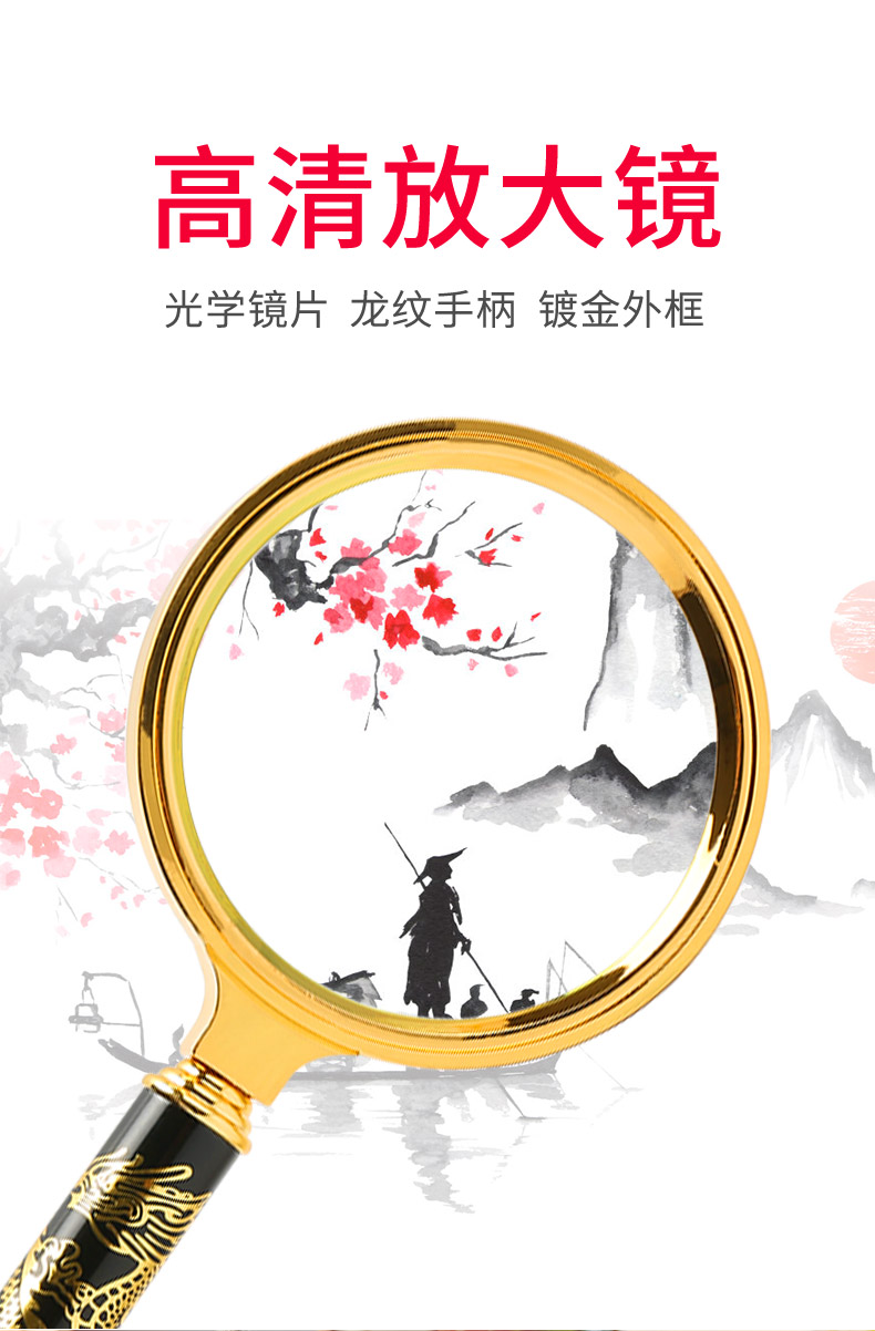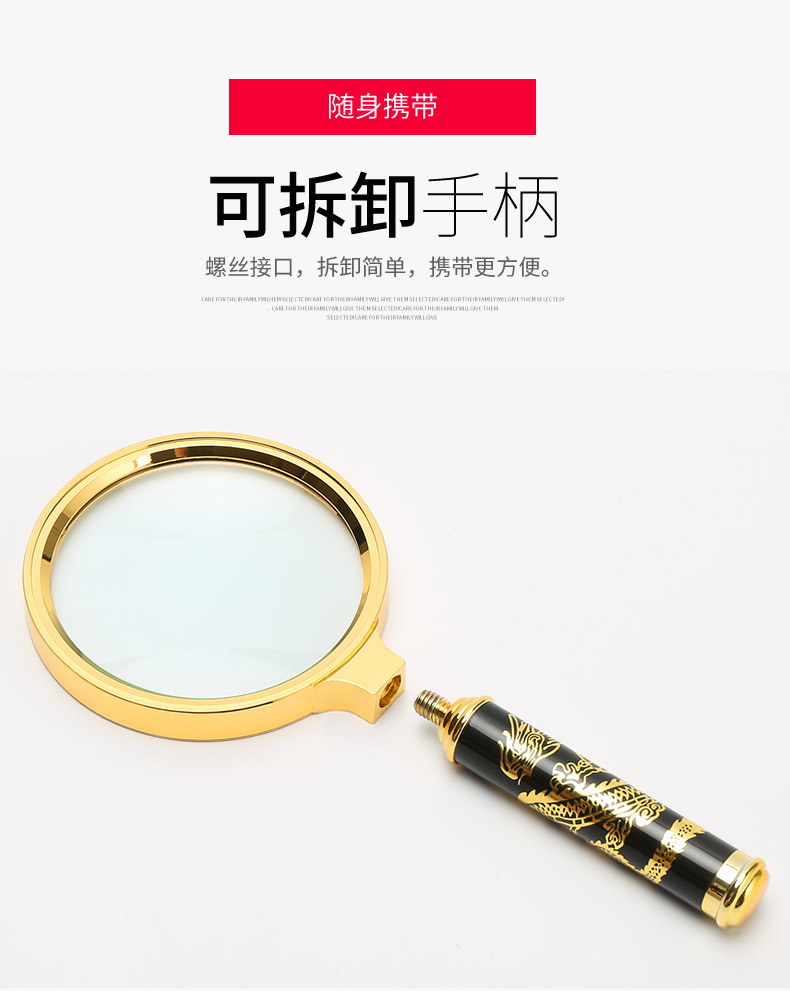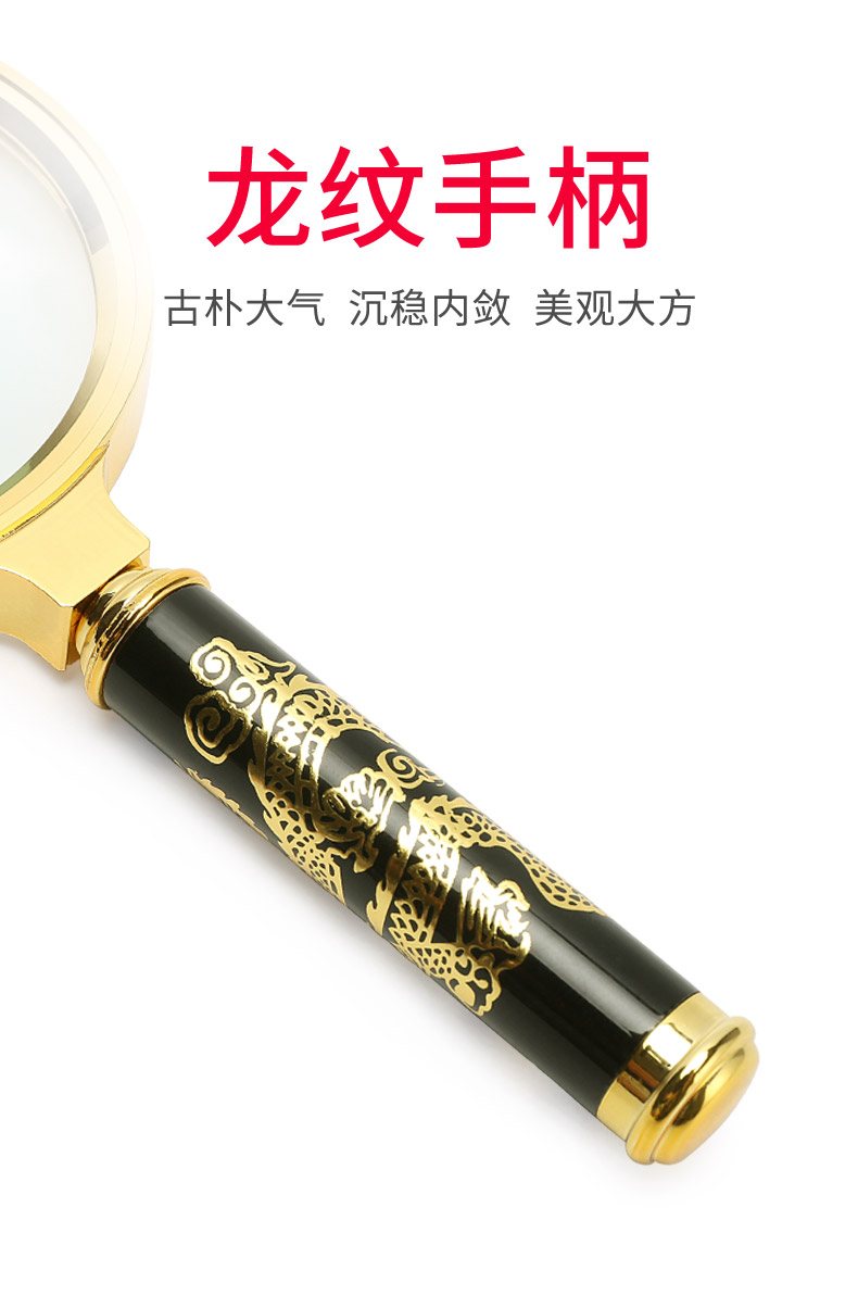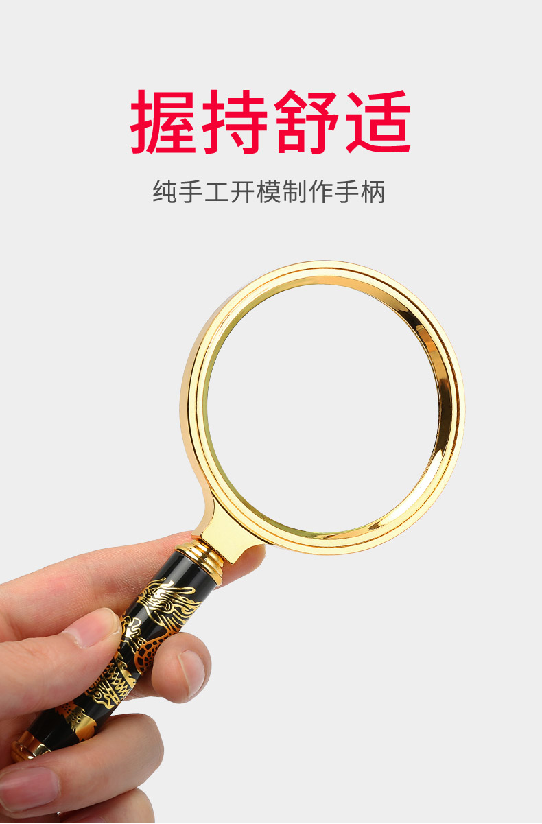 申宏高清放大镜10高倍手持龙纹手柄儿童小学生老人用阅读20光学放大镜老人阅读30便携式100特大1000扩大镜60