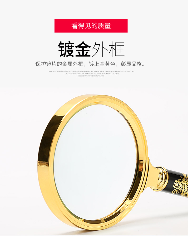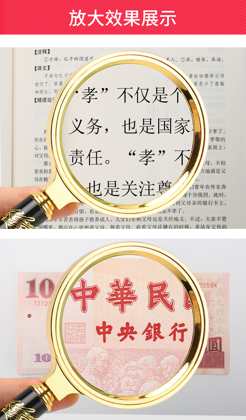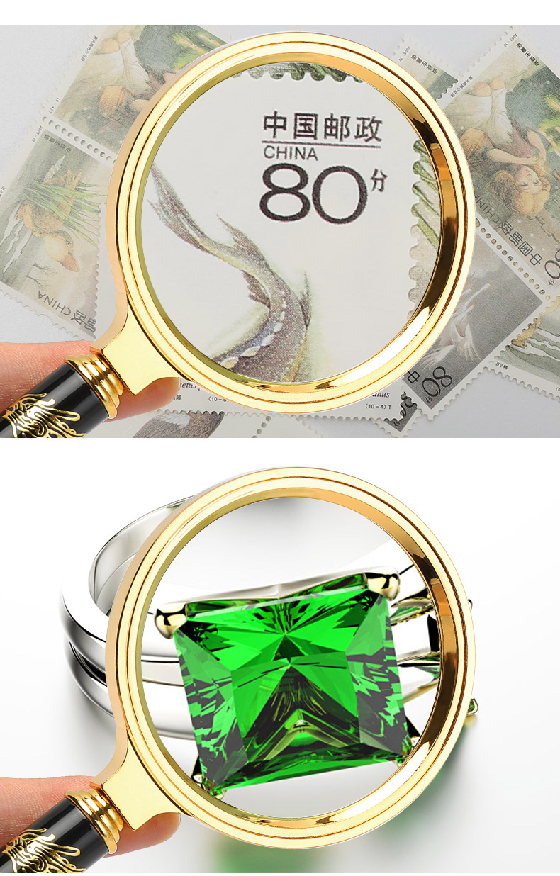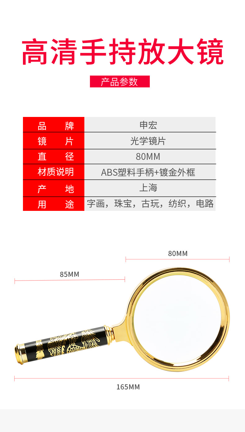 申宏高清放大镜10高倍手持龙纹手柄儿童小学生老人用阅读20光学放大镜老人阅读30便携式100特大1000扩大镜60