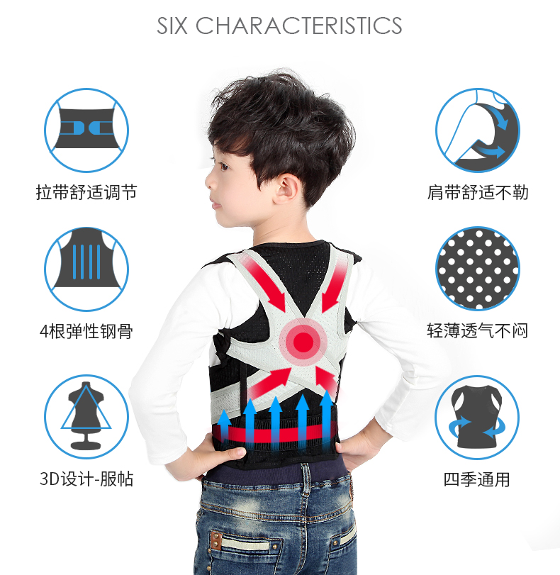 三步挺背揹佳儿童驼背坐姿矫正器小孩贝贝佳青少年学生矫正背带