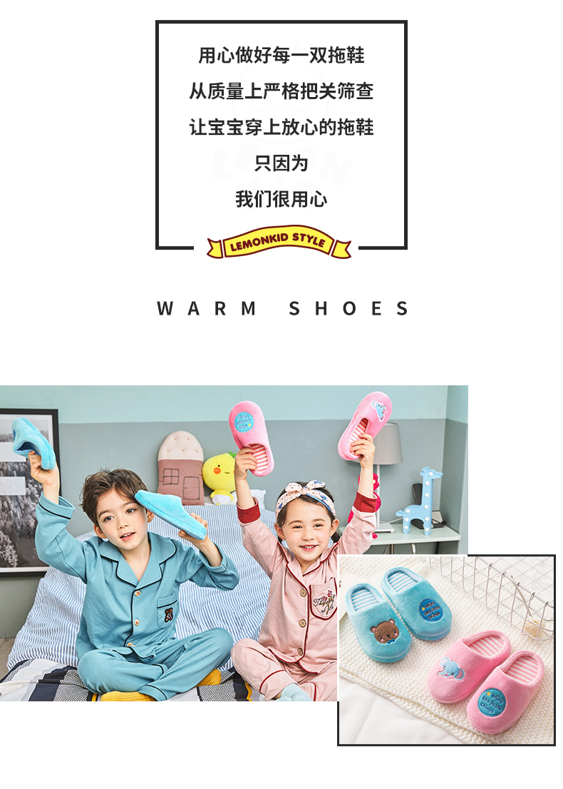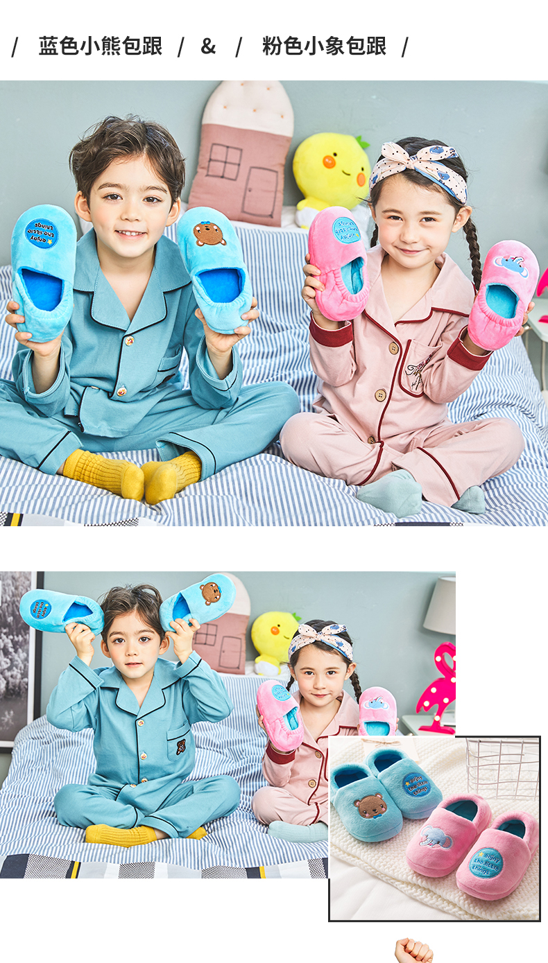 五儿童家居男女秋冬季幼儿室内宝宝小孩加绒包跟防滑毛毛棉拖鞋