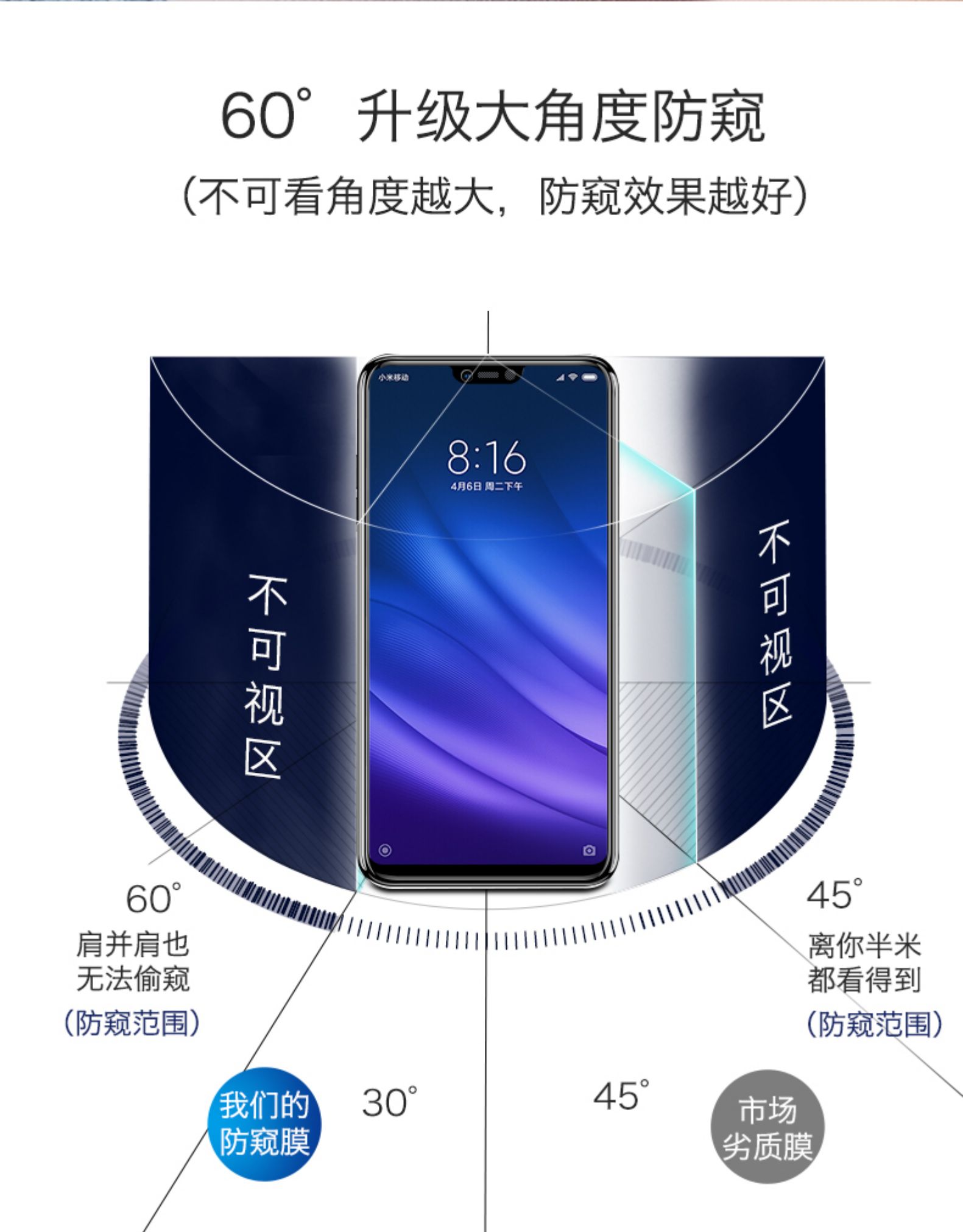 小米8钢化膜6x防偷窥膜8se防窥膜青春版防偷窃手机6透窥小米8屏幕指纹版探索全屏防摔玻璃覆盖贴膜无白边保护