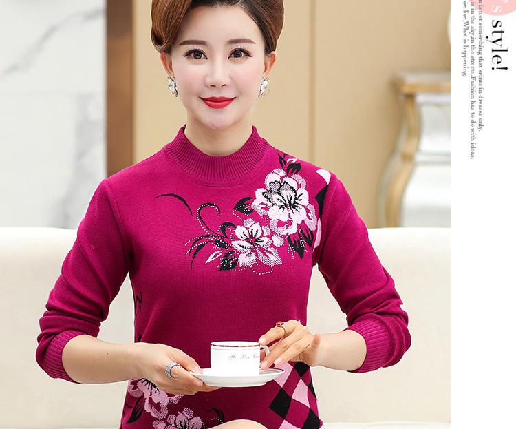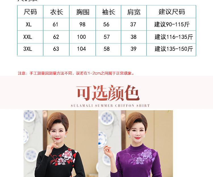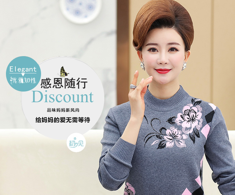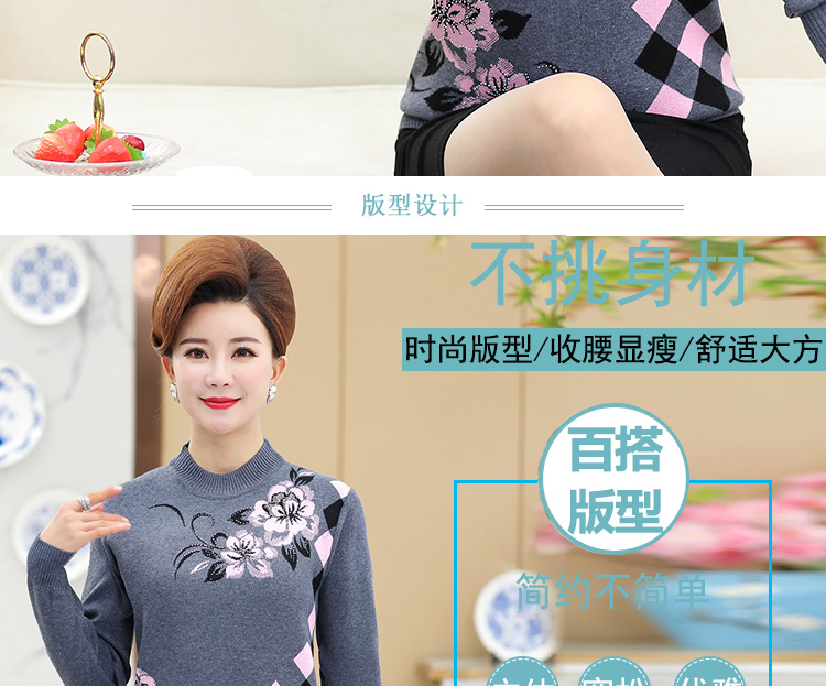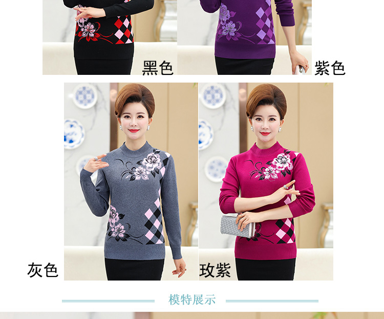 中老年人女打底衫中年妈妈秋冬装加绒加厚保暖洋气老太太奶奶毛衣