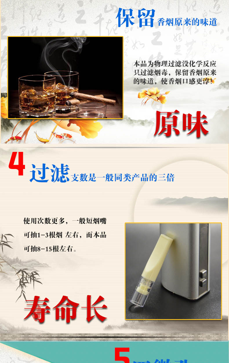粗细烟皆可使用,多重过滤,双色可选,健康时尚,高端之选