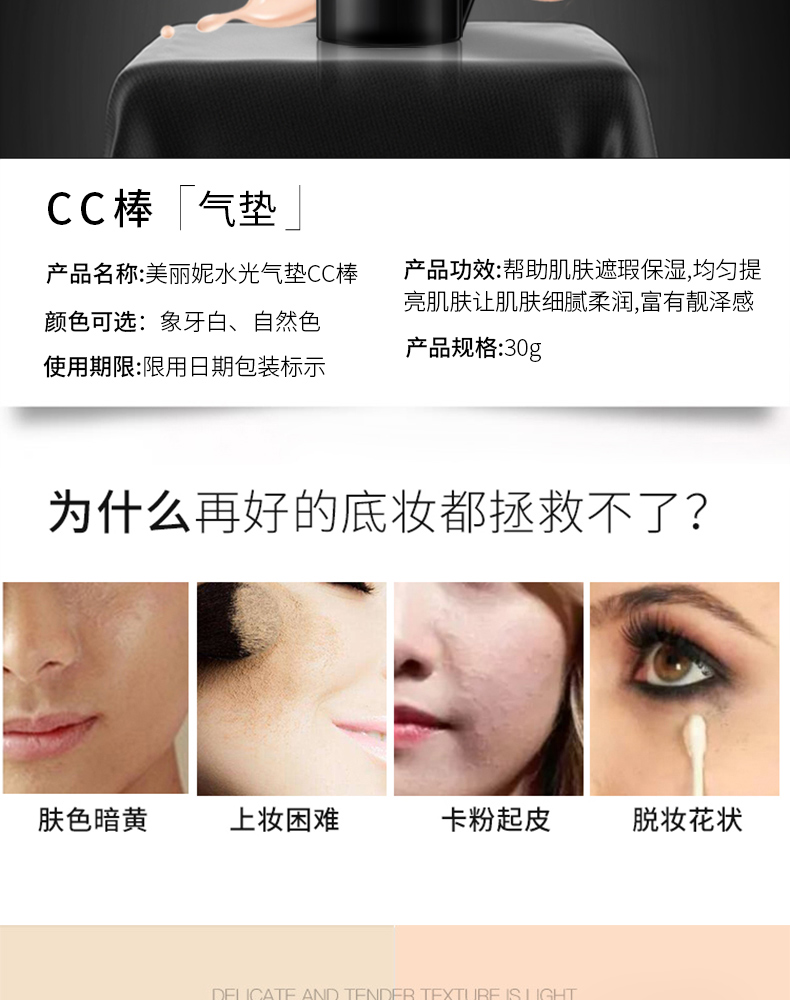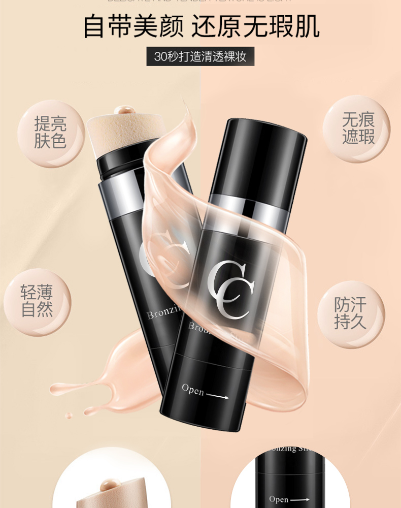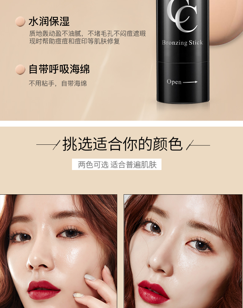 【孕妇可用】火爆抖音快手的形象美修颜遮瑕CC棒,保湿提亮肤色裸妆气垫CC霜,滋润补水持久不脱妆,自然裸妆,遮瑕亮肤,透爽保湿,让肌肤轻便,轻盈,轻薄,靓丽完美女性。【赠运费险】