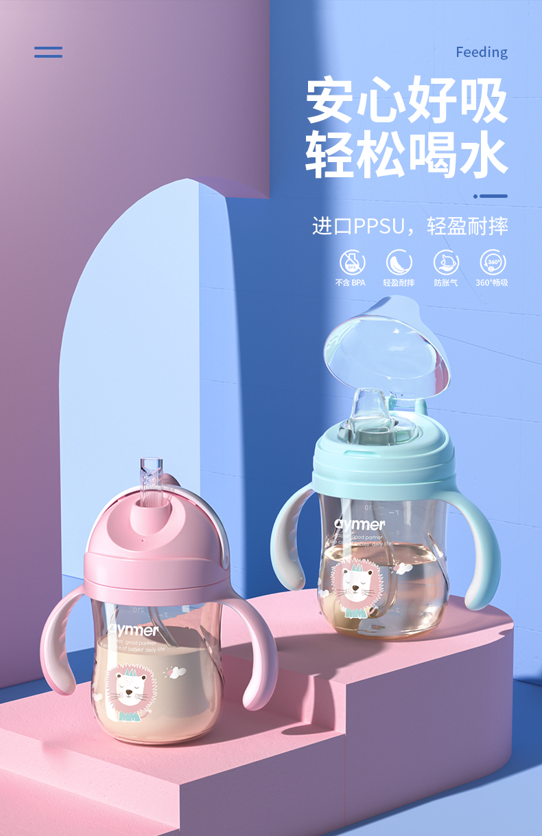 【一杯两用】PPSU材质,幼儿园学饮杯吸管杯,专注婴幼儿健康,呵护宝宝健康成长!宝妈们赶紧入手吧!