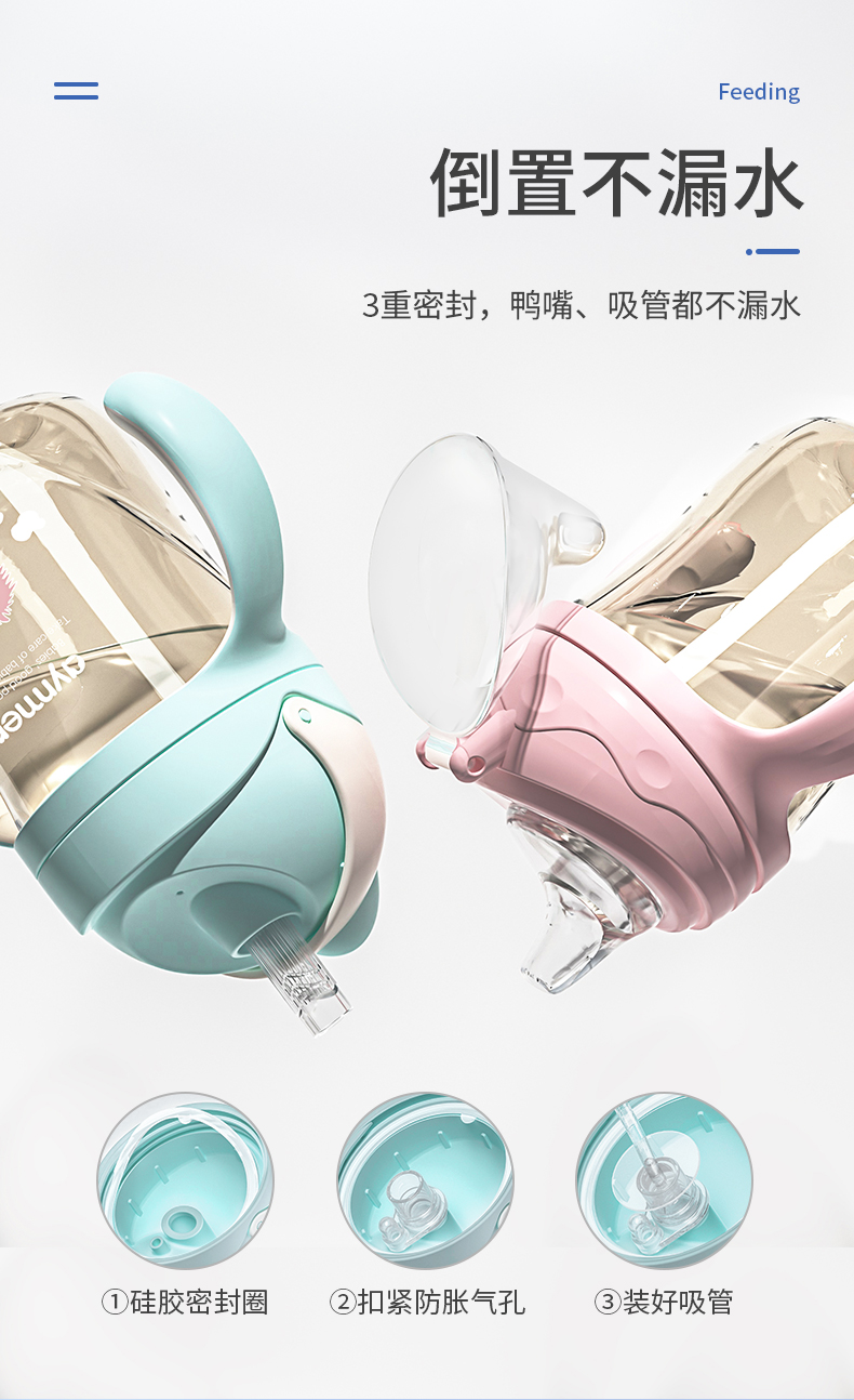 ppsu吸管杯宝宝学饮杯婴儿防呛防漏喝水杯儿童水杯两用鸭嘴杯耐摔