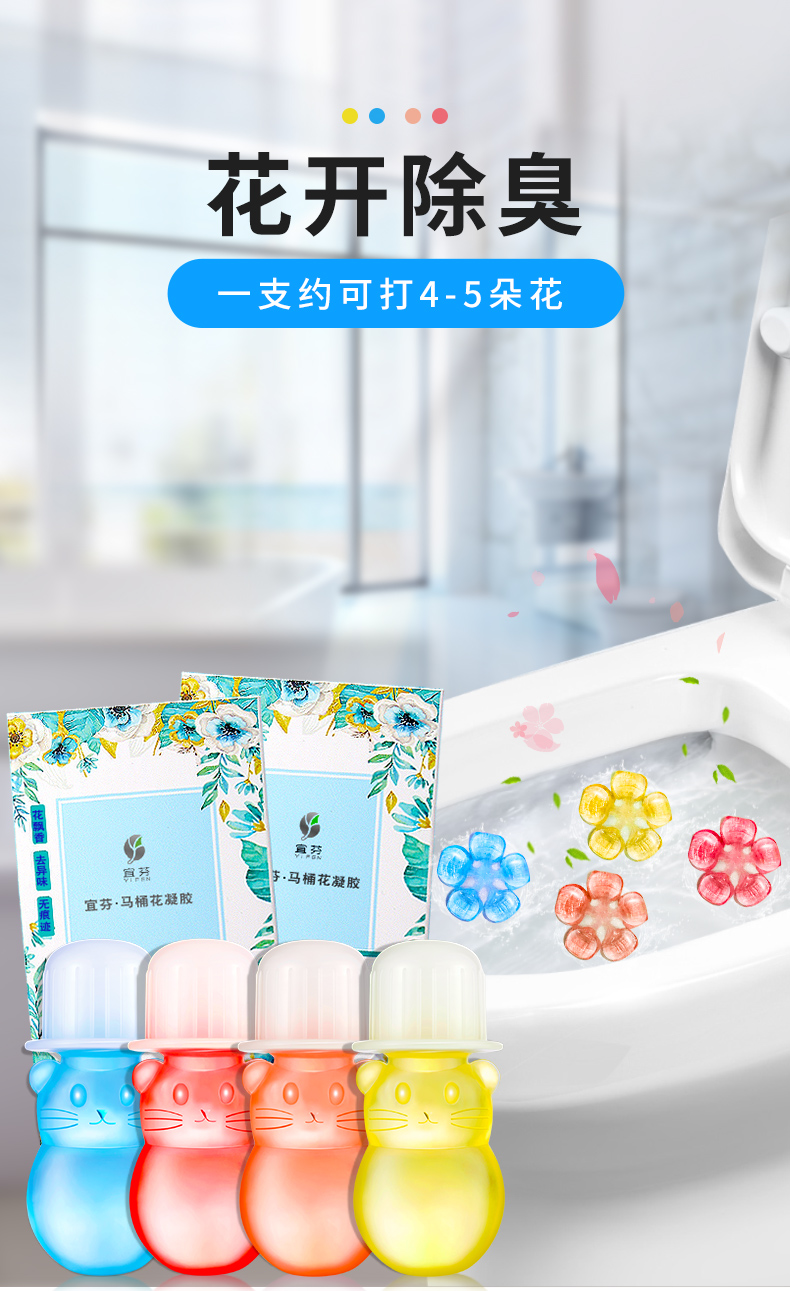 马桶凝胶清洁剂小花开花花瓣厕所去异味除臭神器洁厕宝灵日本清香