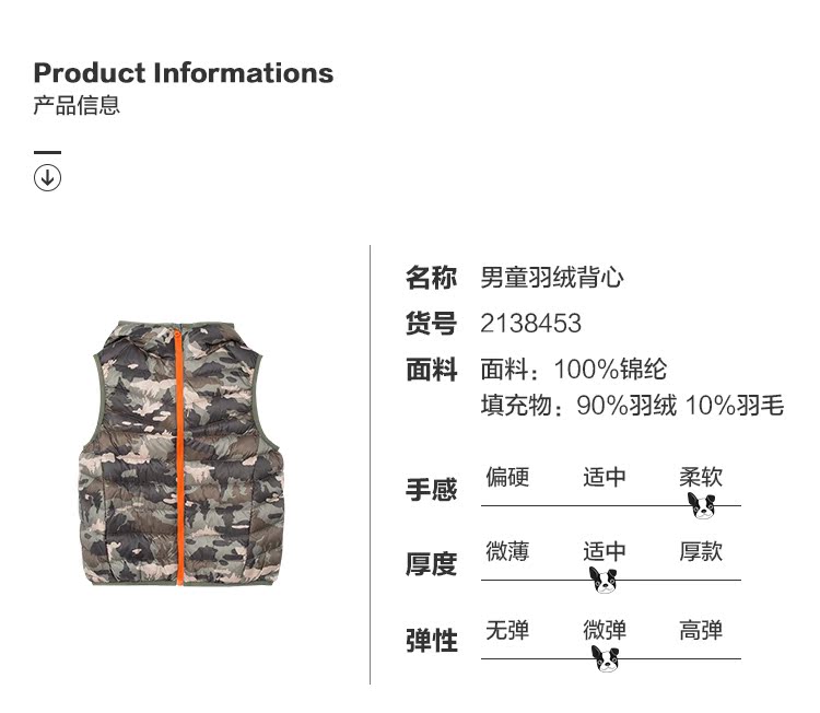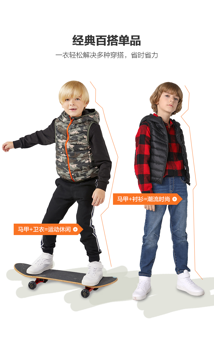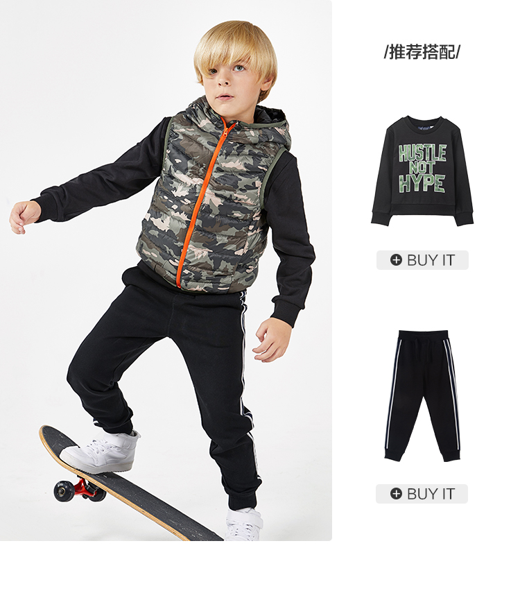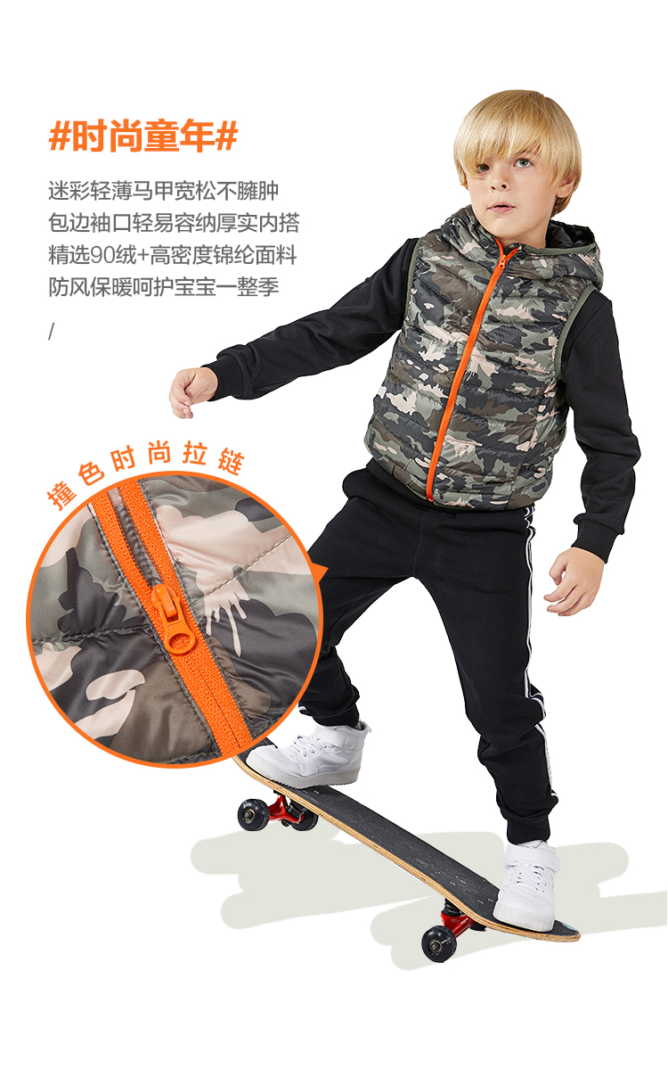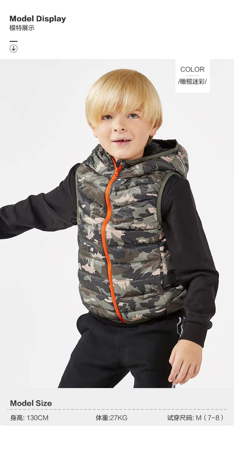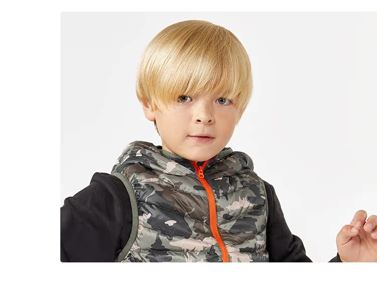 【北美童装TOP品牌】潮童穿搭,品质好物!90%鸭绒充填,时尚迷彩羽绒马甲,穿上轻羽绒,随时轻运动!让你与绒更亲密!给宝宝更好的羽绒服。【赠运费险】