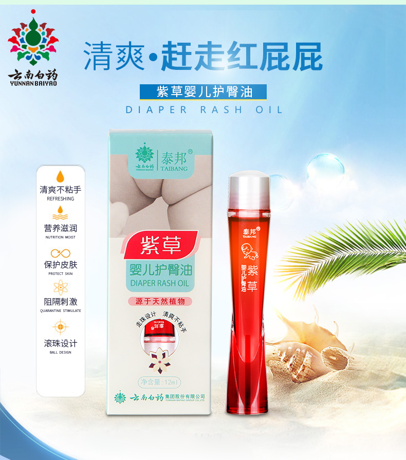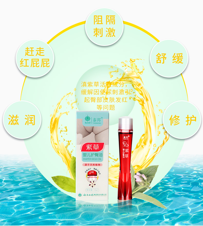 云南白药泰邦护臀油新生儿 婴儿紫草油天然正品护臀膏滚珠红屁屁